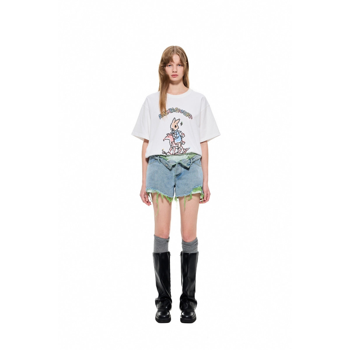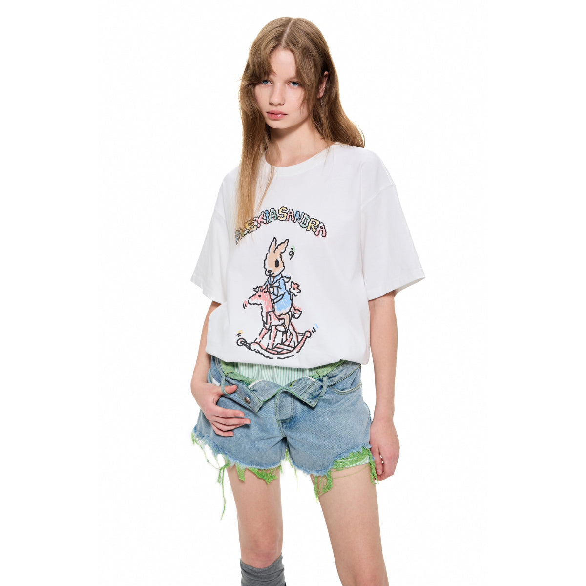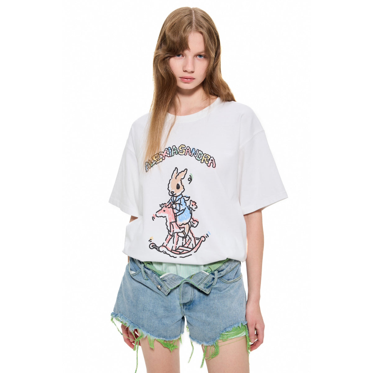 Alexia Sandra Graffiti Wooden Horse Printed T-Shirt White