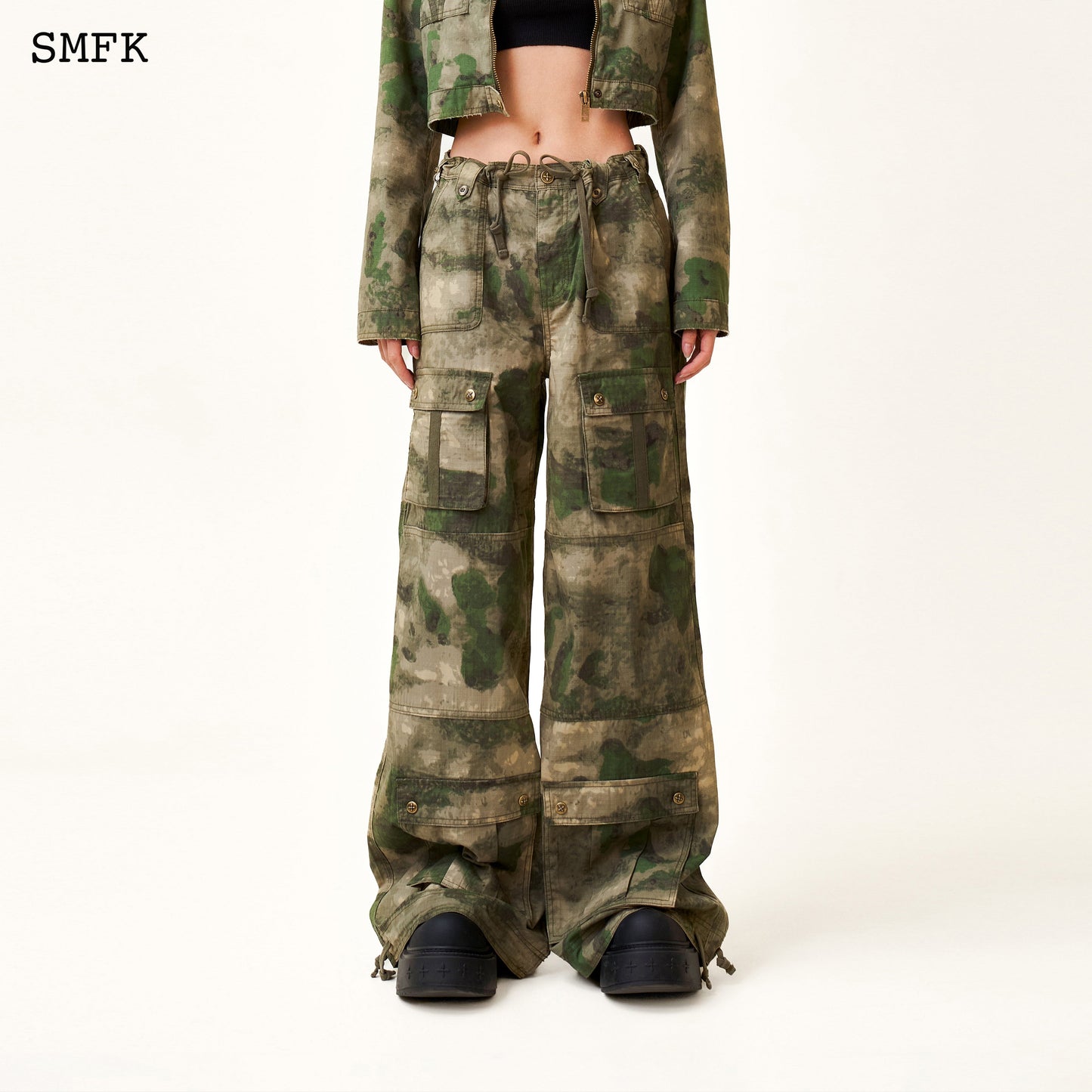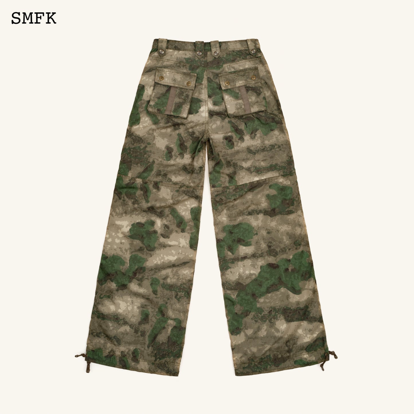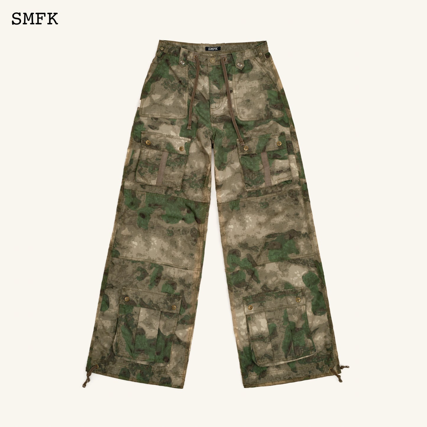 - Design: SMFK’s newly designed hiking pants in 2024. Idea based on the basic structure of retro hiking pants, newly interpreted in the style of wide-leg flared pants. The waist and leg openings adjustable. Made of camouflage wear-resistant plaid fabric, the fabric ingredients have outdoor windproof properties while being breathable to keep the dry wearing feeling.