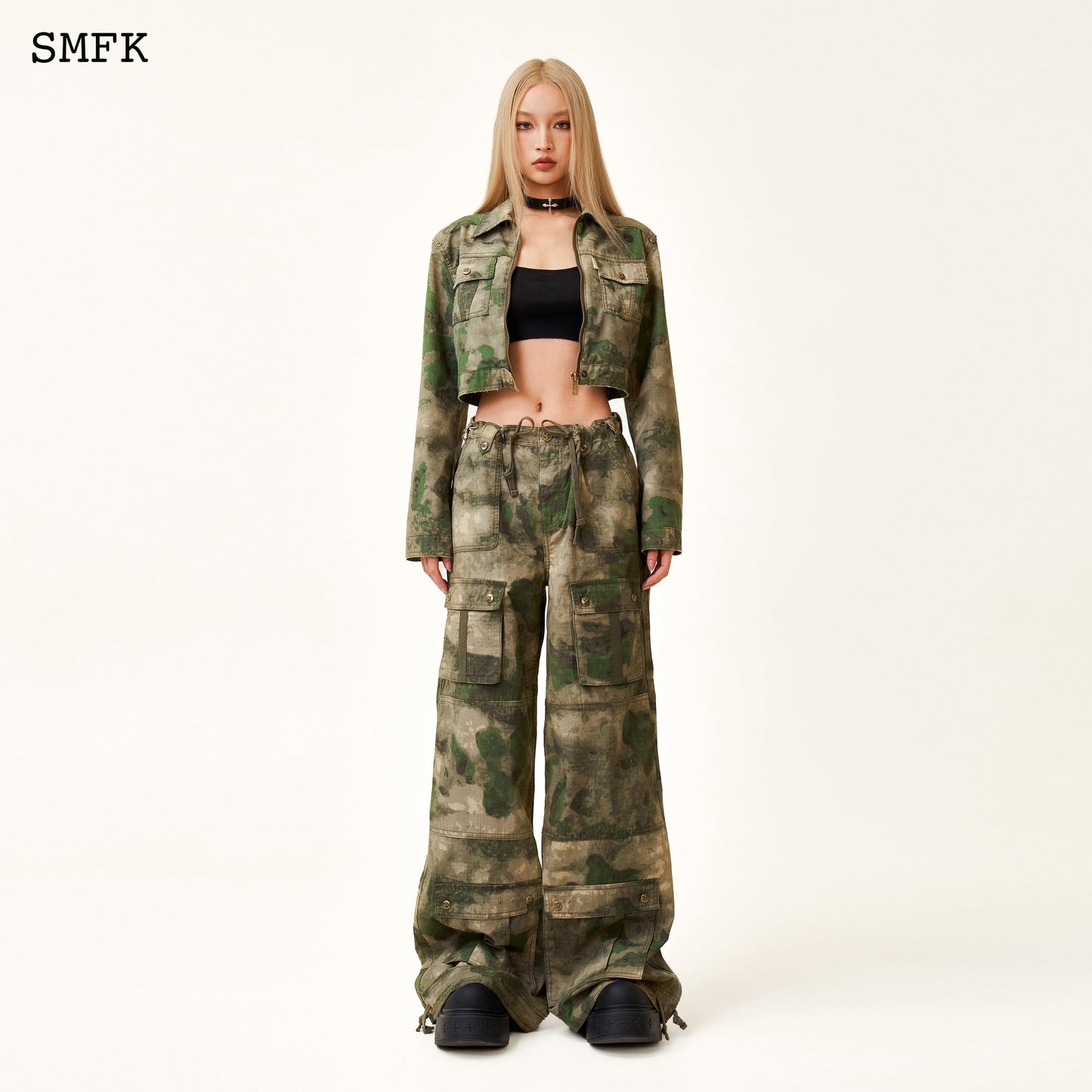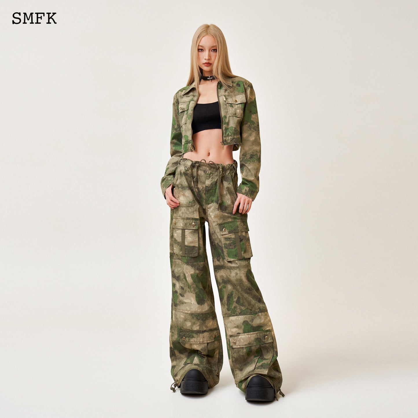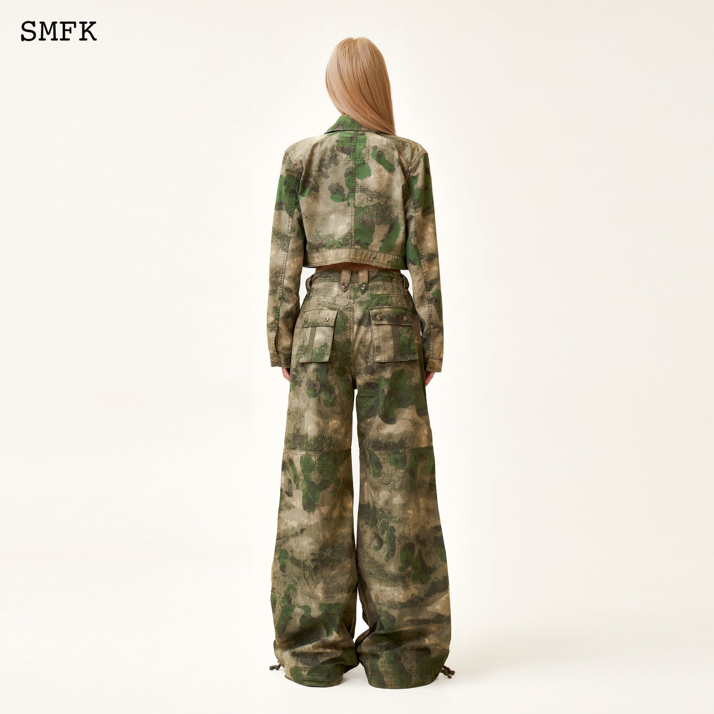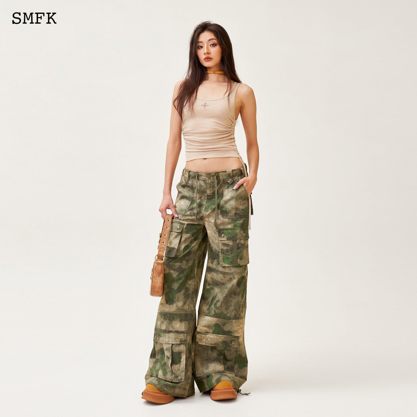 - Design: SMFK’s newly designed hiking pants in 2024. Idea based on the basic structure of retro hiking pants, newly interpreted in the style of wide-leg flared pants. The waist and leg openings adjustable. Made of camouflage wear-resistant plaid fabric, the fabric ingredients have outdoor windproof properties while being breathable to keep the dry wearing feeling.