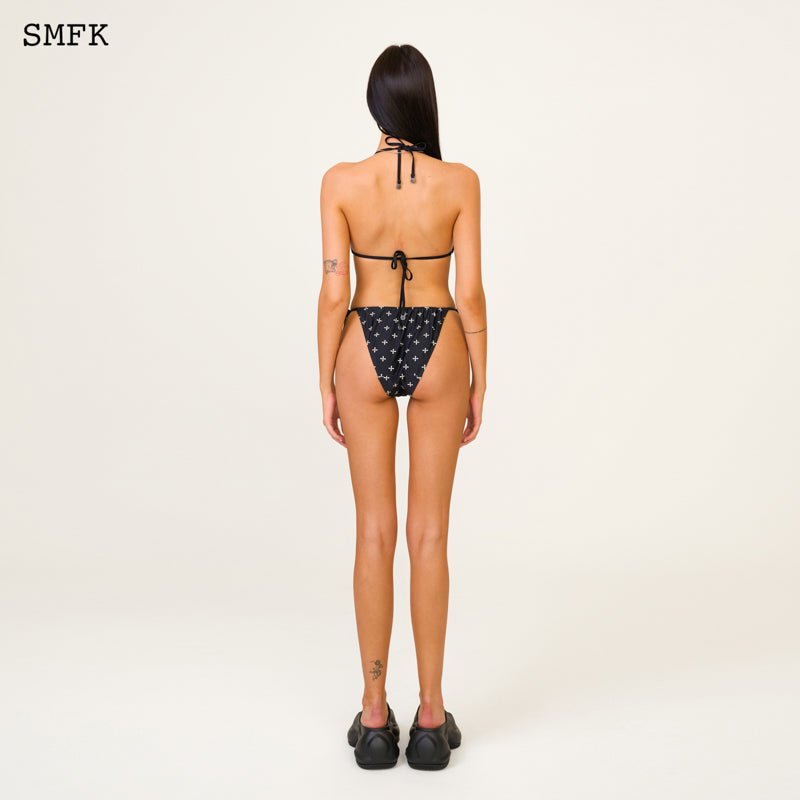 - Design: SMFK classic summer bikini swimsuit set. The summer 2024 version, using elastic matte swimsuit fabric, can be used in swimming pools and seawater. Classic black garden pattern. Retro metal coin buckle.