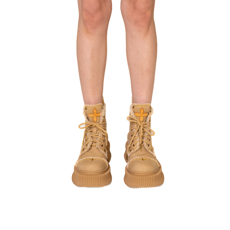 Surface: Canvas, Cowhide Leather; Lining: Canvas, Sole: Rubber; Hardware: brass