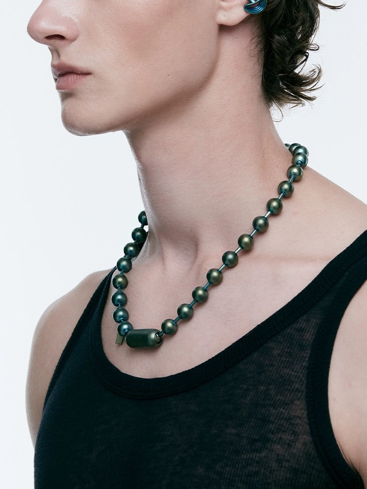 KVK The Void Collection Colorful Large Pearl Necklace Green