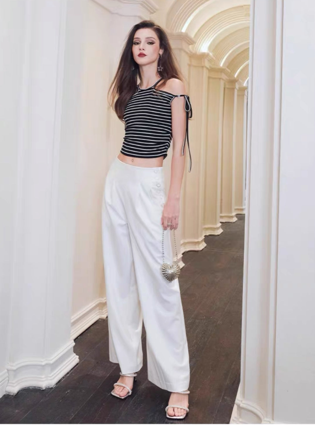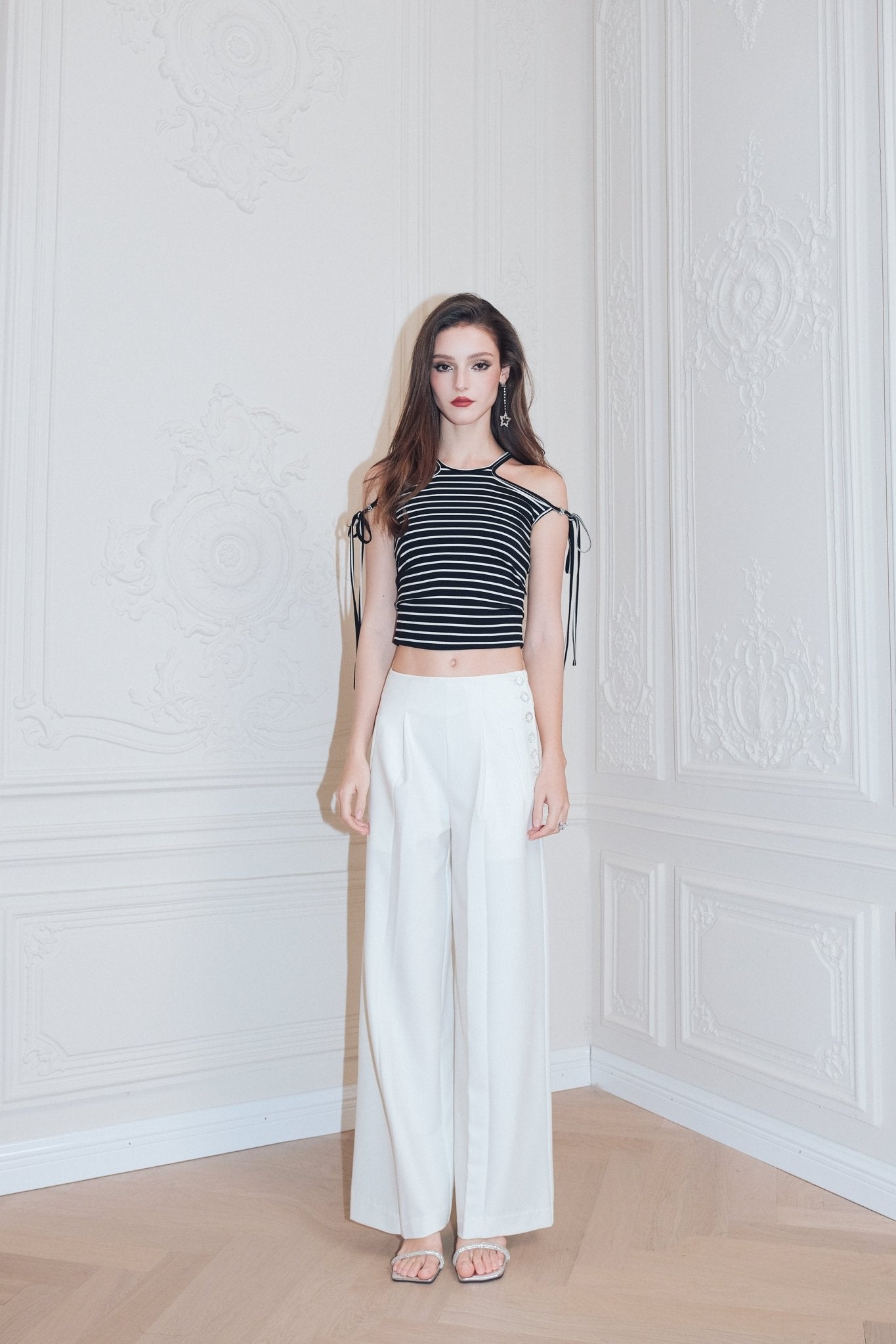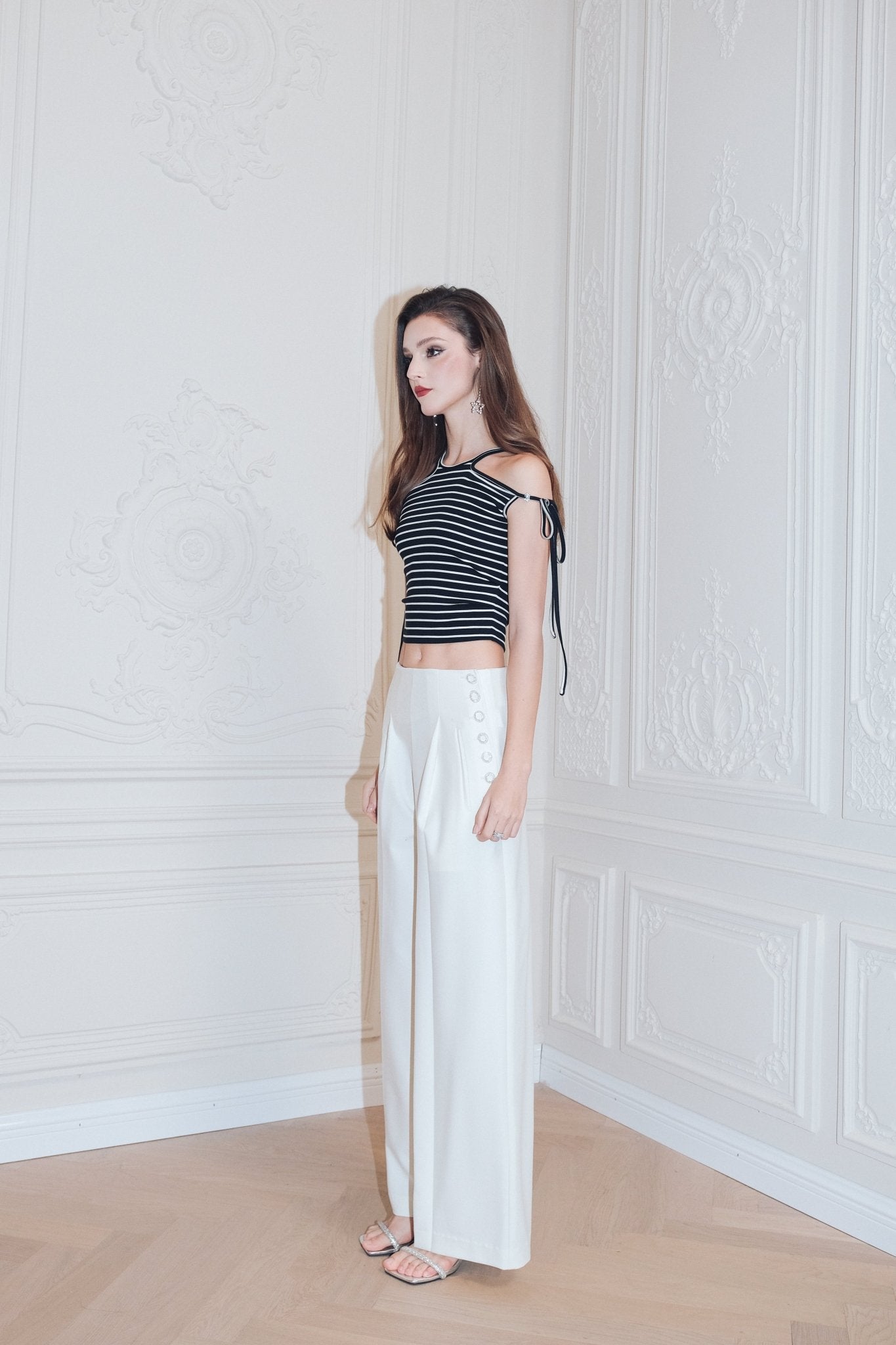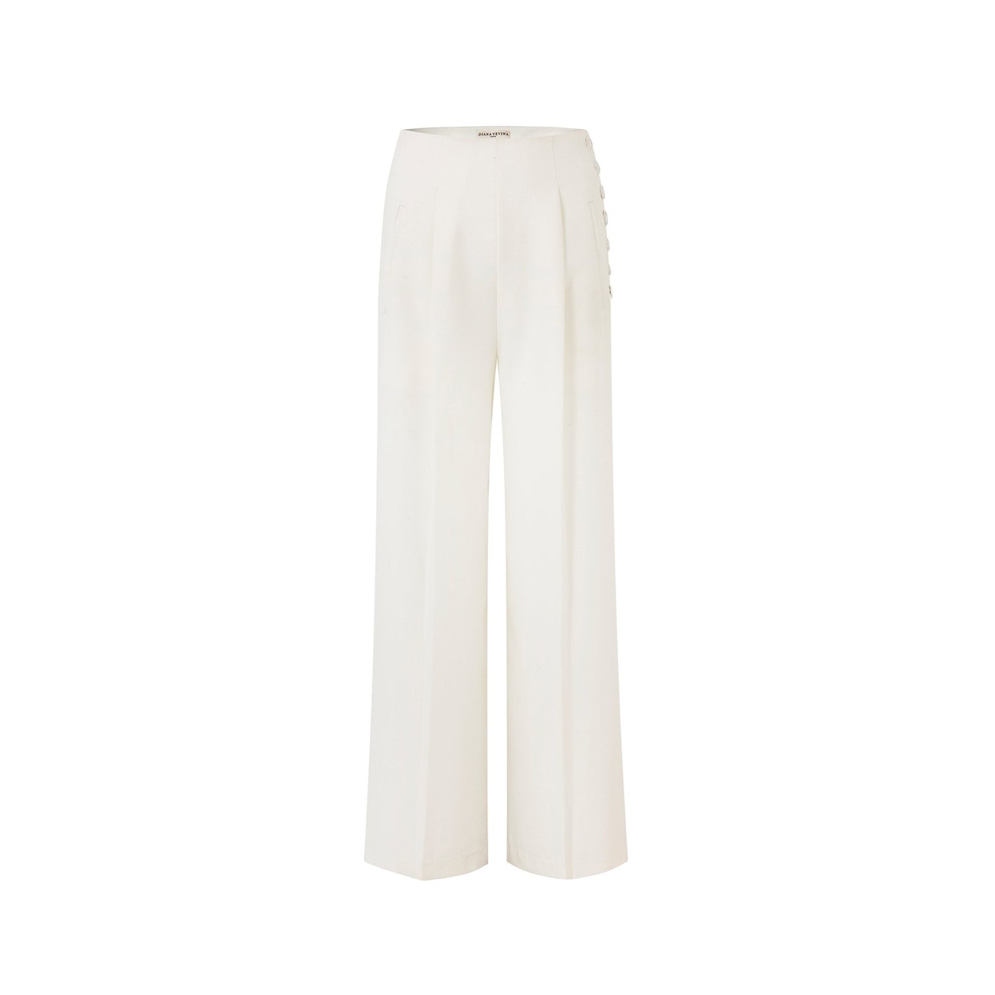 DIANA VEVINA Straight Leg Suit Pants with Metallic Hand-Sewn Buttons