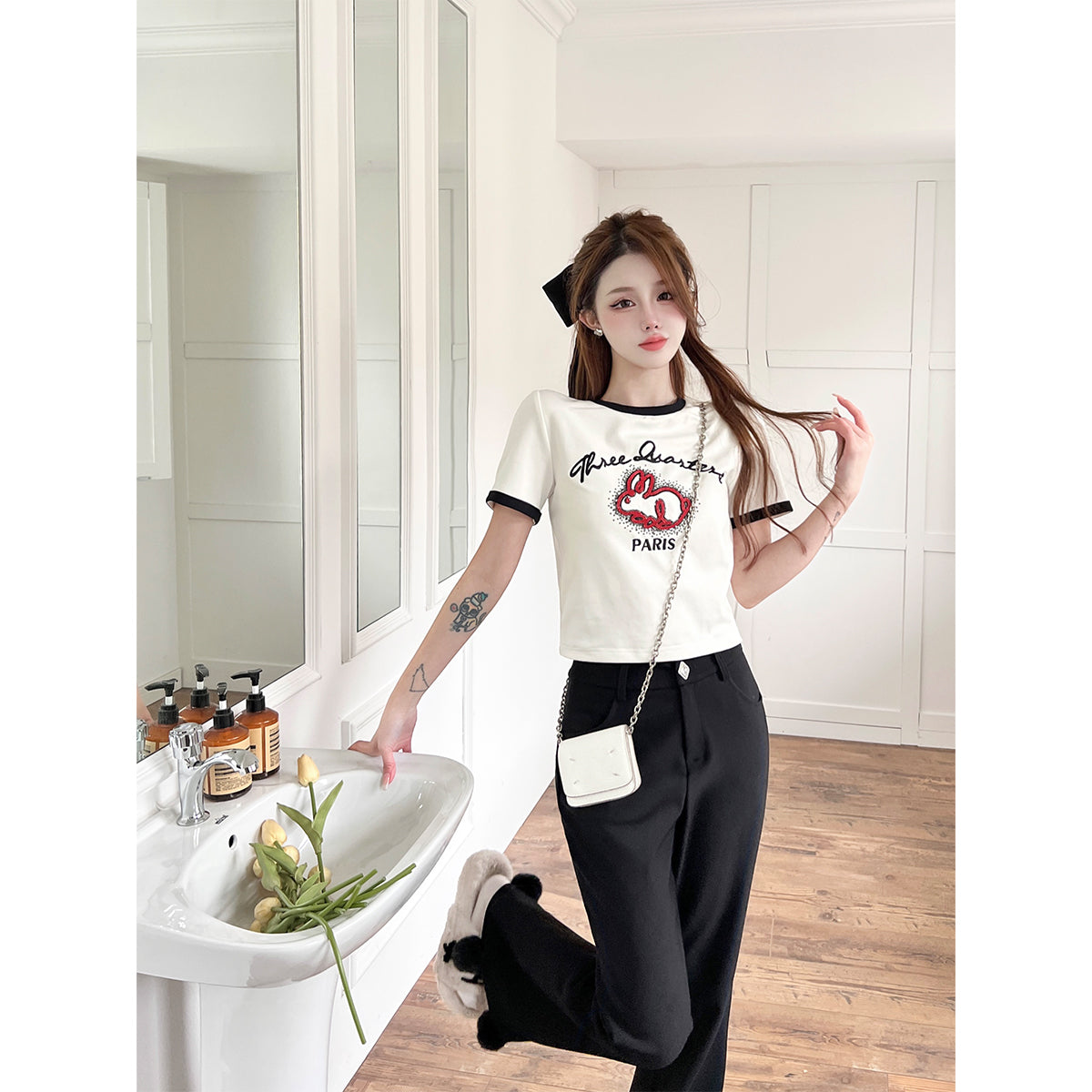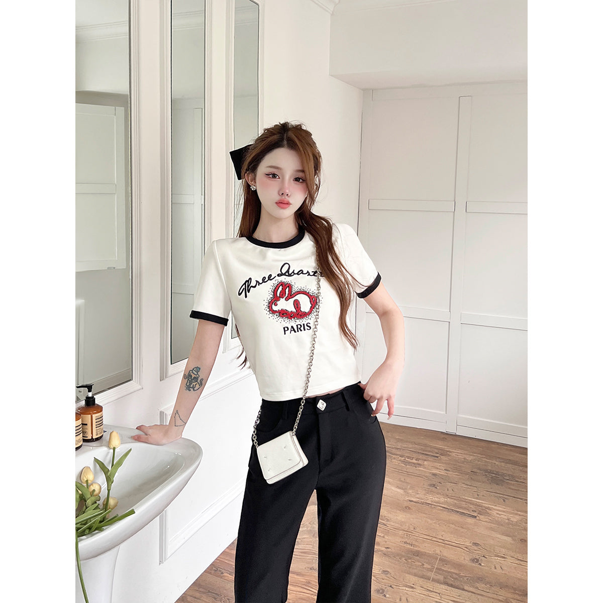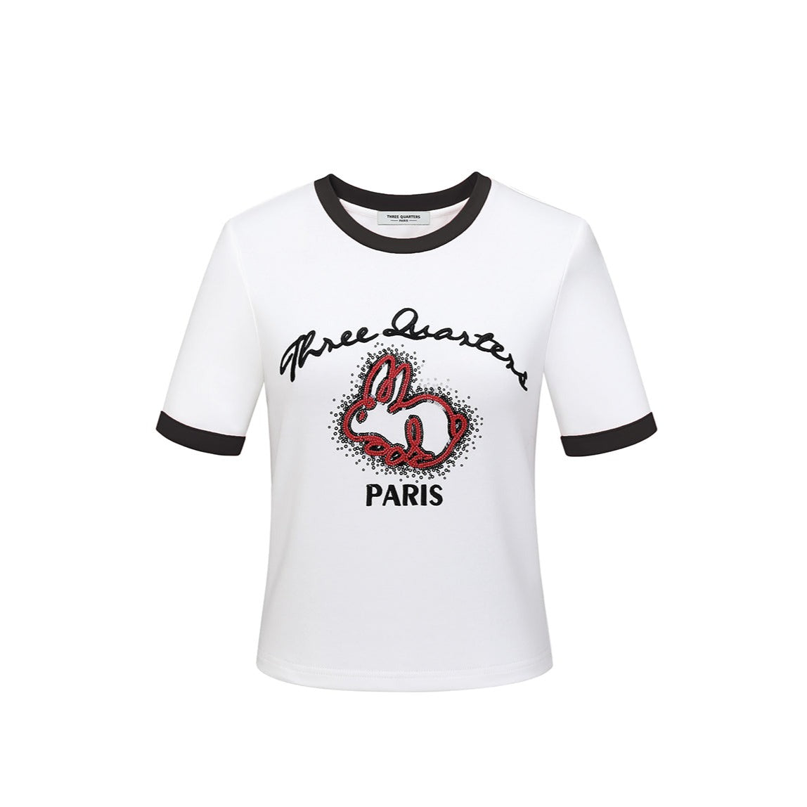 THREE QUARTERS Embroidery Logo Rabbit Tee Black