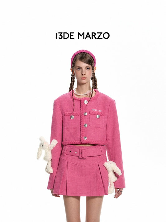 13DE MARZO Classic Weave Tweed Short Jacket Cabaret