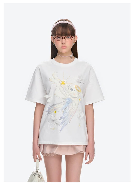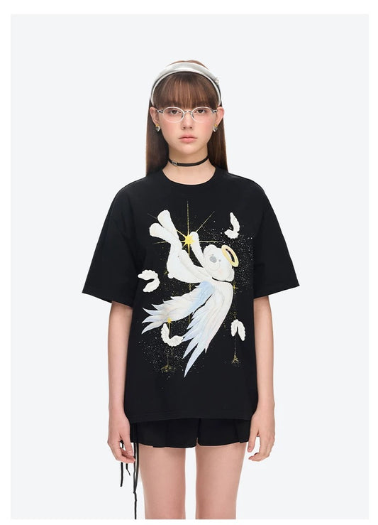 13DE MARZO Angel Devil Hollow Out T-Shirt White