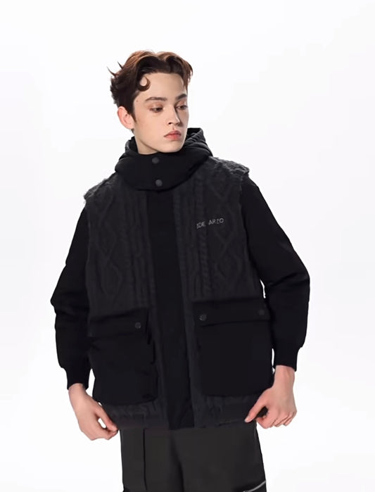 13DE MARZO Bear Weave Knit Patch Down Jacket Forest River