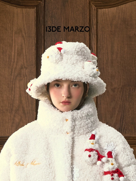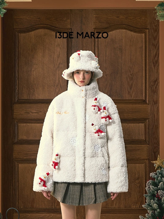 13DE MARZO Christmas Snowman Bear Fleece Coat Beige