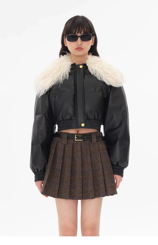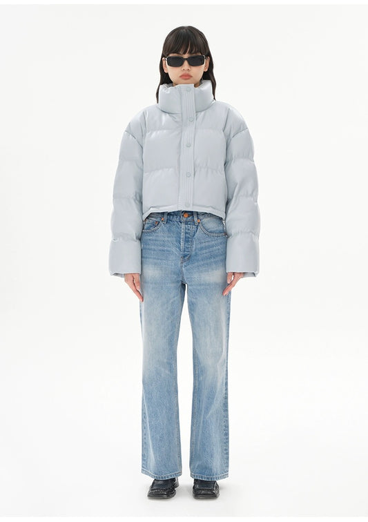 Concise-White PU Puff Cropped Jacket Baby Blue