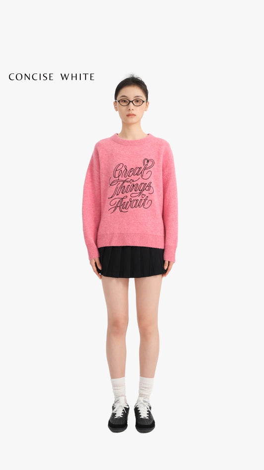 Concise-White Great Things Await Crew Neck Sweater Watermelon