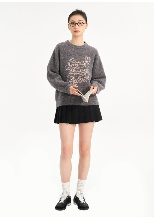 Concise-White Great Things Await Crew Neck Sweater Grey