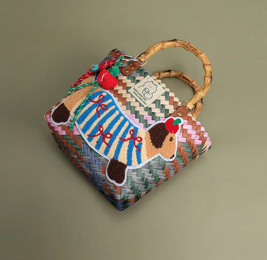 ✦FX✦ Retro Striped Dachshund Dog Woven Handbag