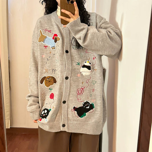 ✦FX✦ Retro Cutie Puppy 'Be Lucky' Casual Cardigan
