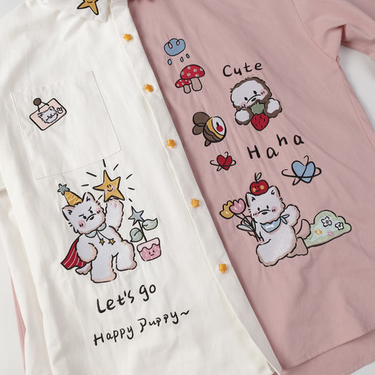 ✦FX✦ Happy Puppy Fun Cartoon Embroidery Shirt