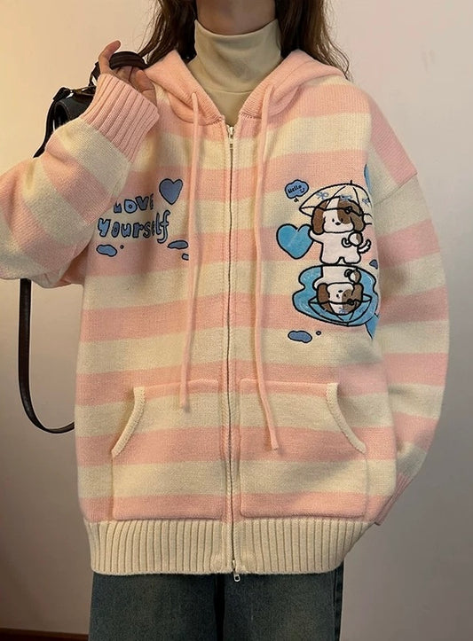 ✦FX✦ Love Yourself Cute Puppy Cartoon Embroidery Zip Jacket