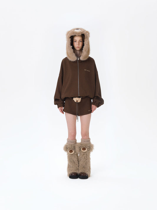 13DE MARZO Doozoo Zipper Hoodie Brown