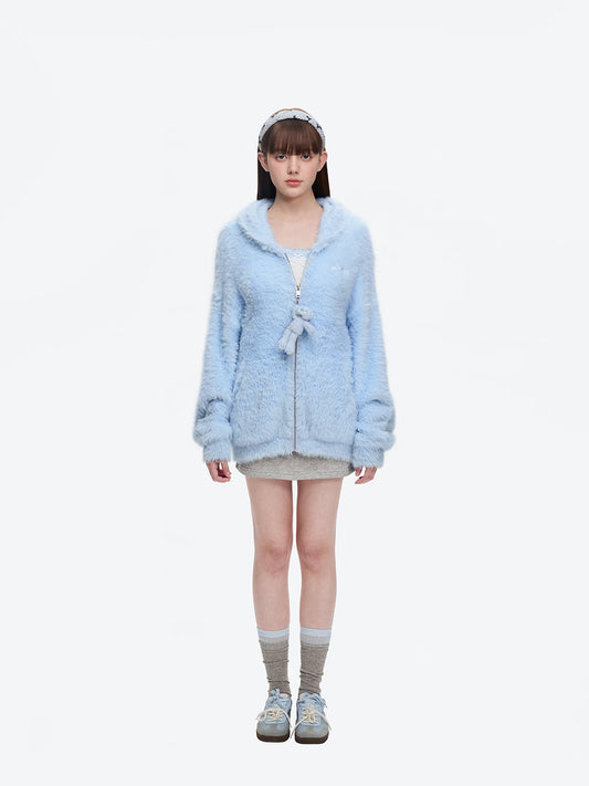 13DE MARZO Faux Mink Fur Zip Jacket Blue