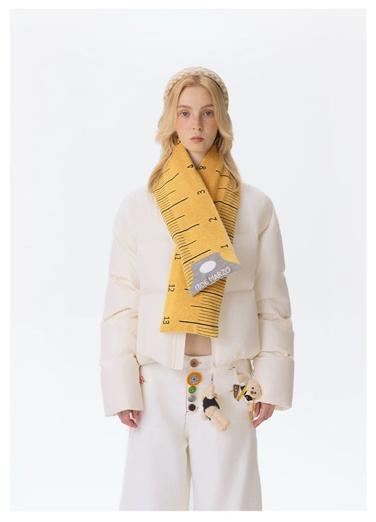 Ann Andelman White Detachable Color-blocked Scarf Down Jacket