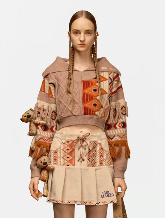 13DE MARZO Tribe Hunting Totem Short Sweater Brown