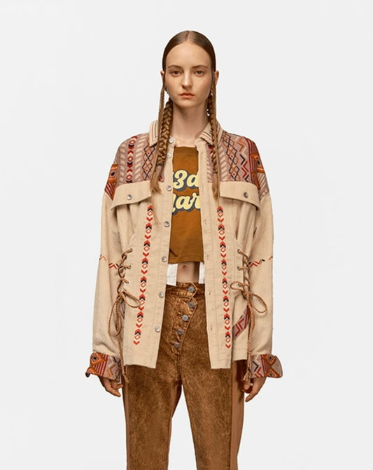 13DE MARZO Tribe Hunting Totem Coat Beige