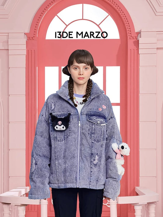 13DE MARZO Kuromi Bear Denim Down Jacket Navy Peony