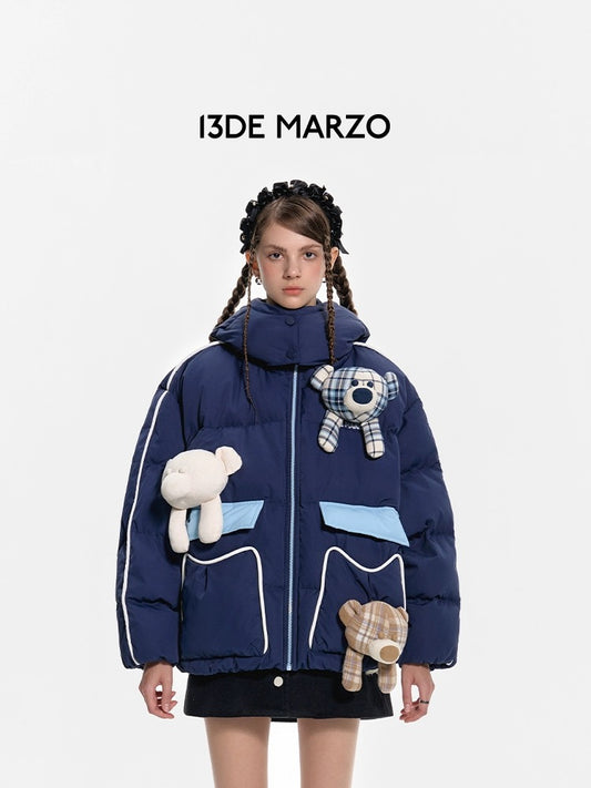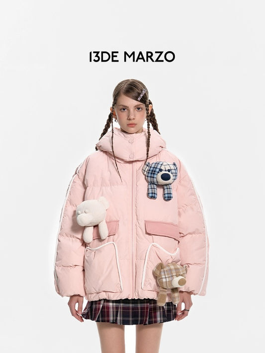 13DE MARZO Bear Icon Transparency Down Jacket White