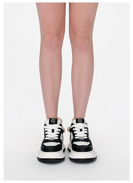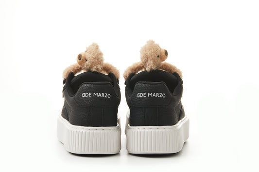 13DE MARZO Plush Bear Logo Lace Platform Sneaker Black