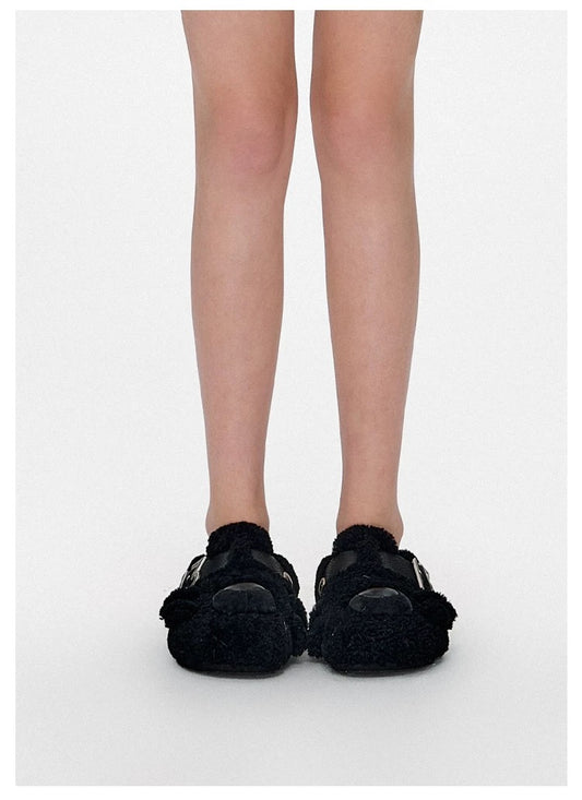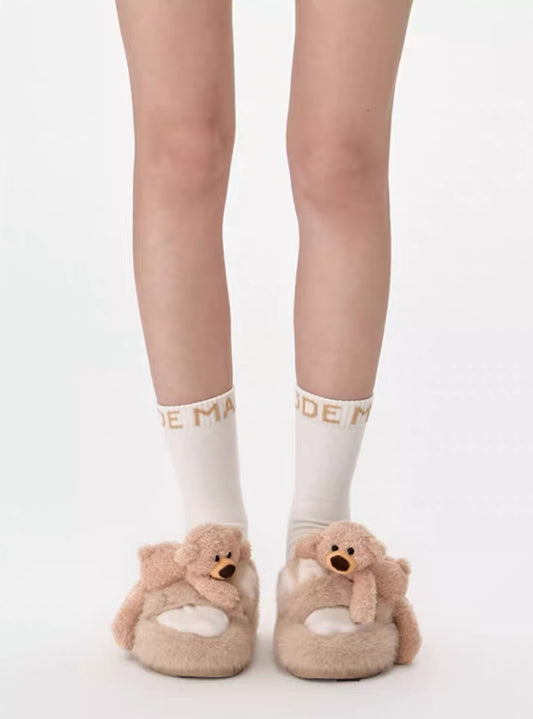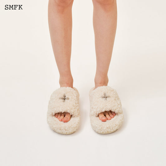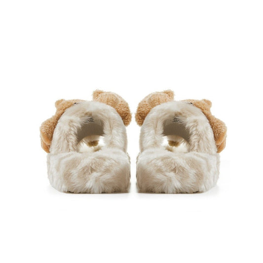 13DE MARZO Logo Furry Plush Slipper Antique White