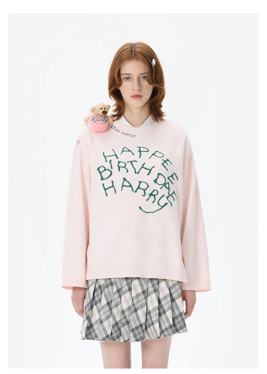 Harry Potter × 13DE MARZO Rubeus Hagrid Birthday Cake Sweater Pink