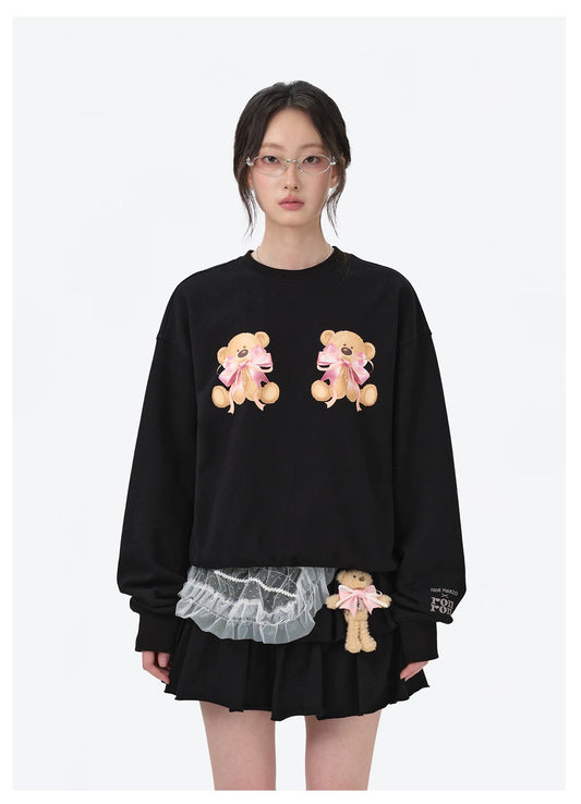 13DE MARZO x RONRON Double Ribbon Bear Sweater Black
