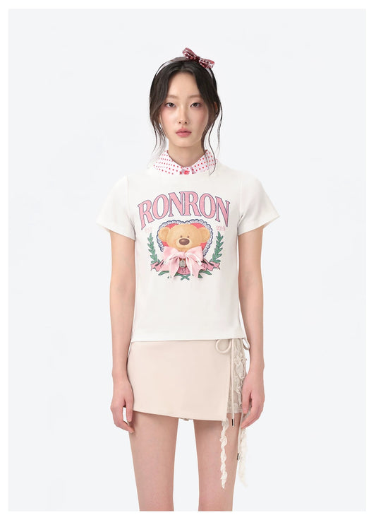 13DE MARZO x RONRON Bear Ribbon Slim Top Beige