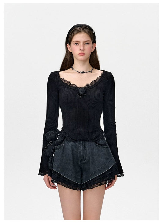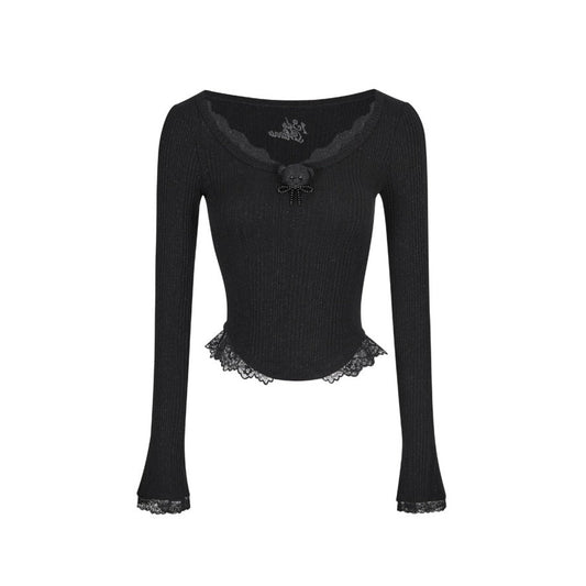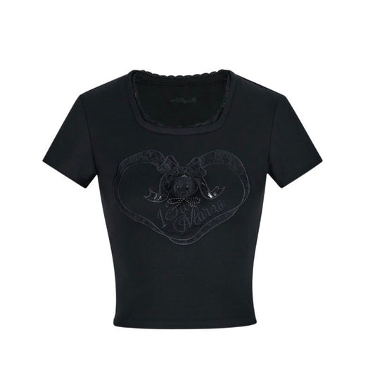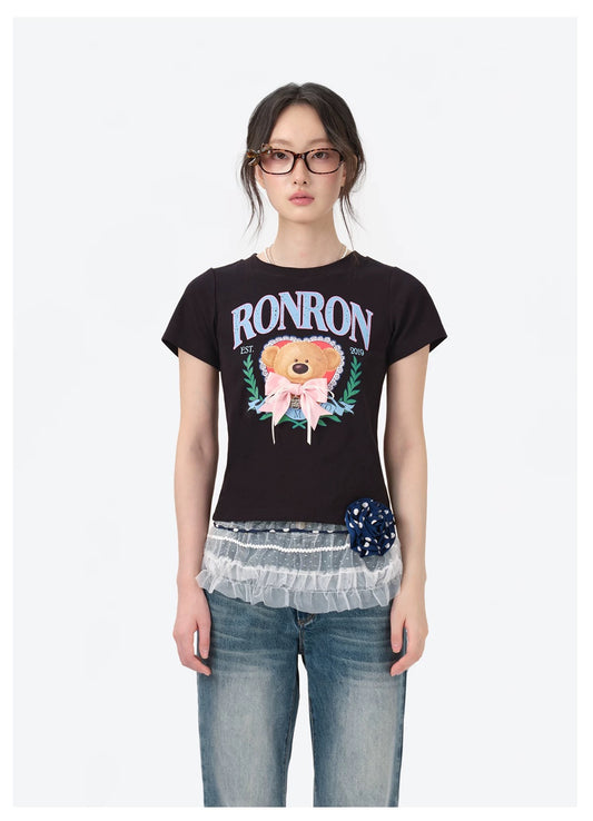 13DE MARZO x RONRON Bear Ribbon Slim Top Black