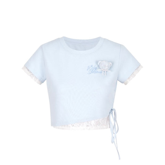 13DE MARZO Doozoo 3-D Bear Cropped Top Blue