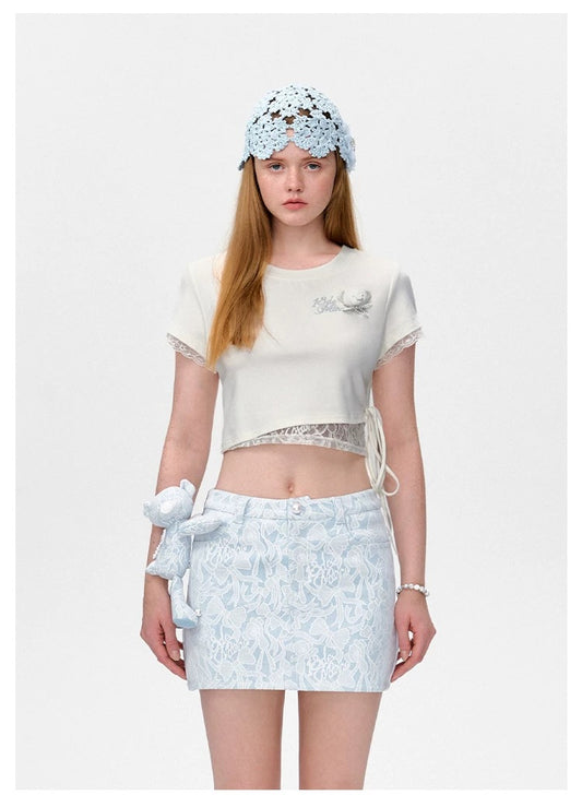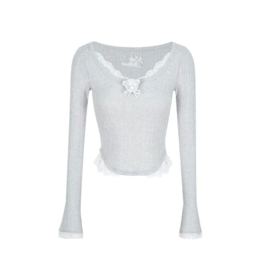 13DE MARZO x RONRON Bear Ribbon Slim Top Blue