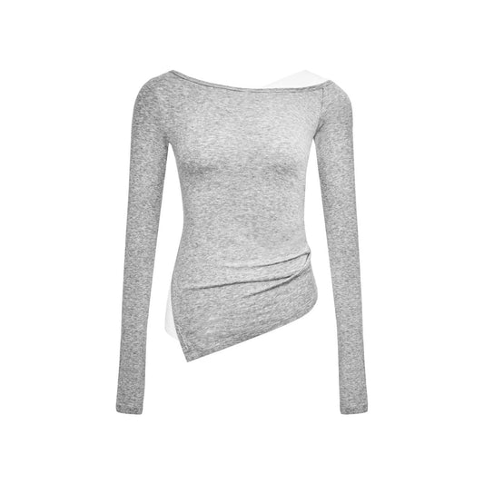 Ann Andelman Grey Faux Two-piece Knit Top With Patchwork Shirt
