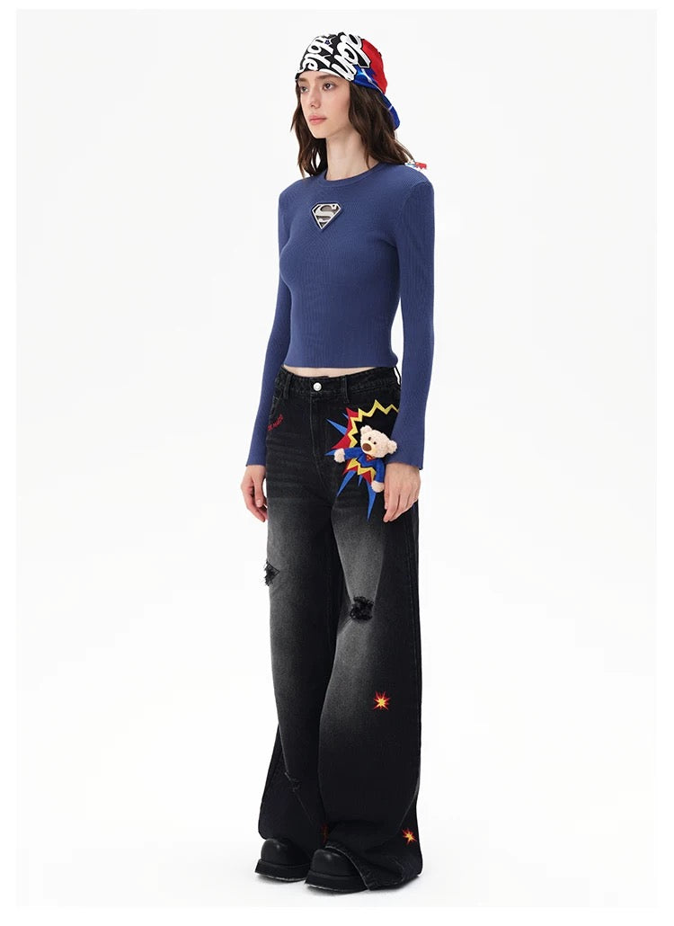 13DE MARZO x Superman Bear 3D Pocket Jeans