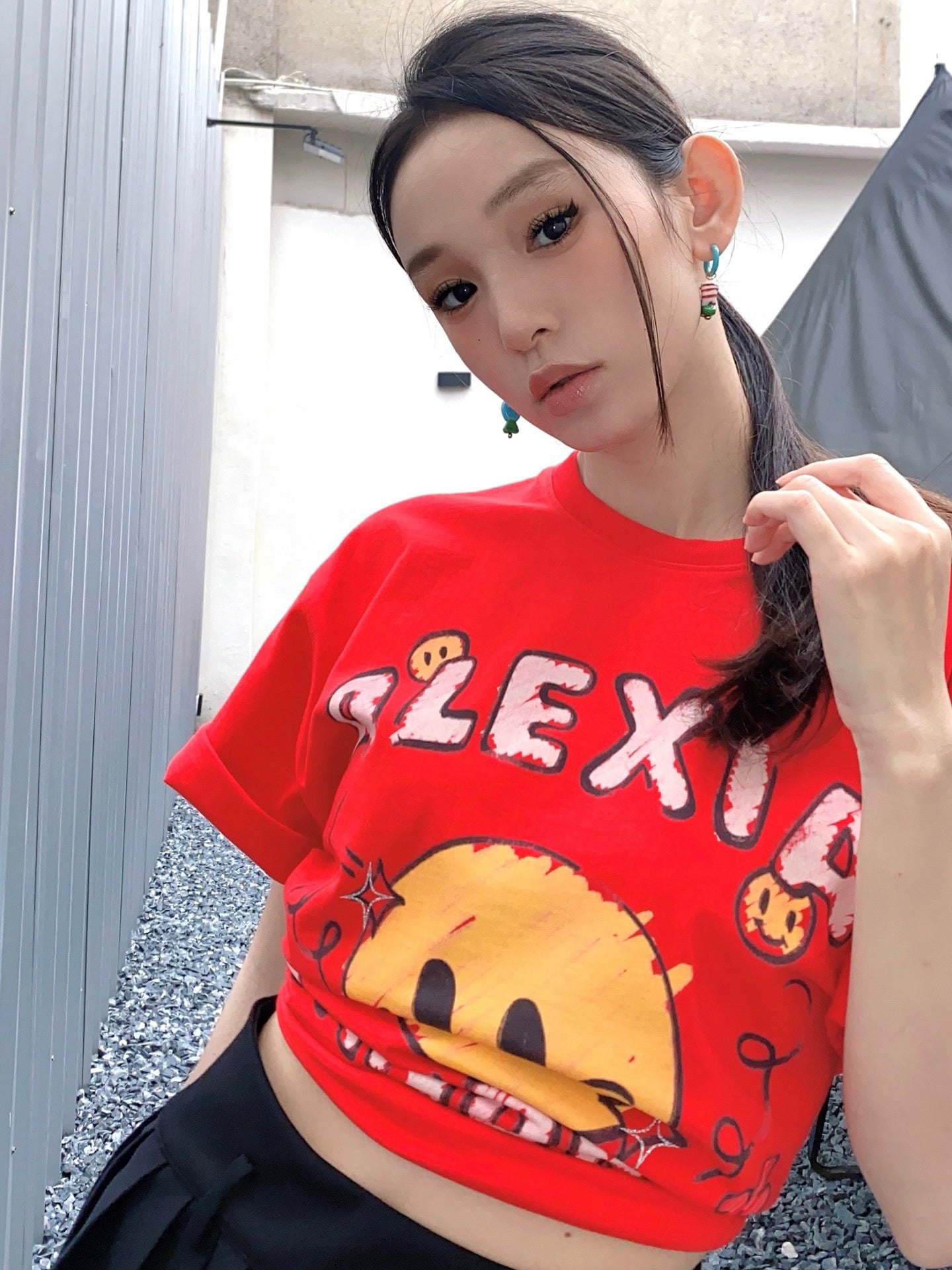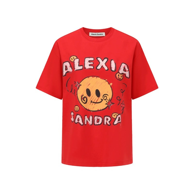 Alexia Sandra Curve Smiley Face T-Shirt Red