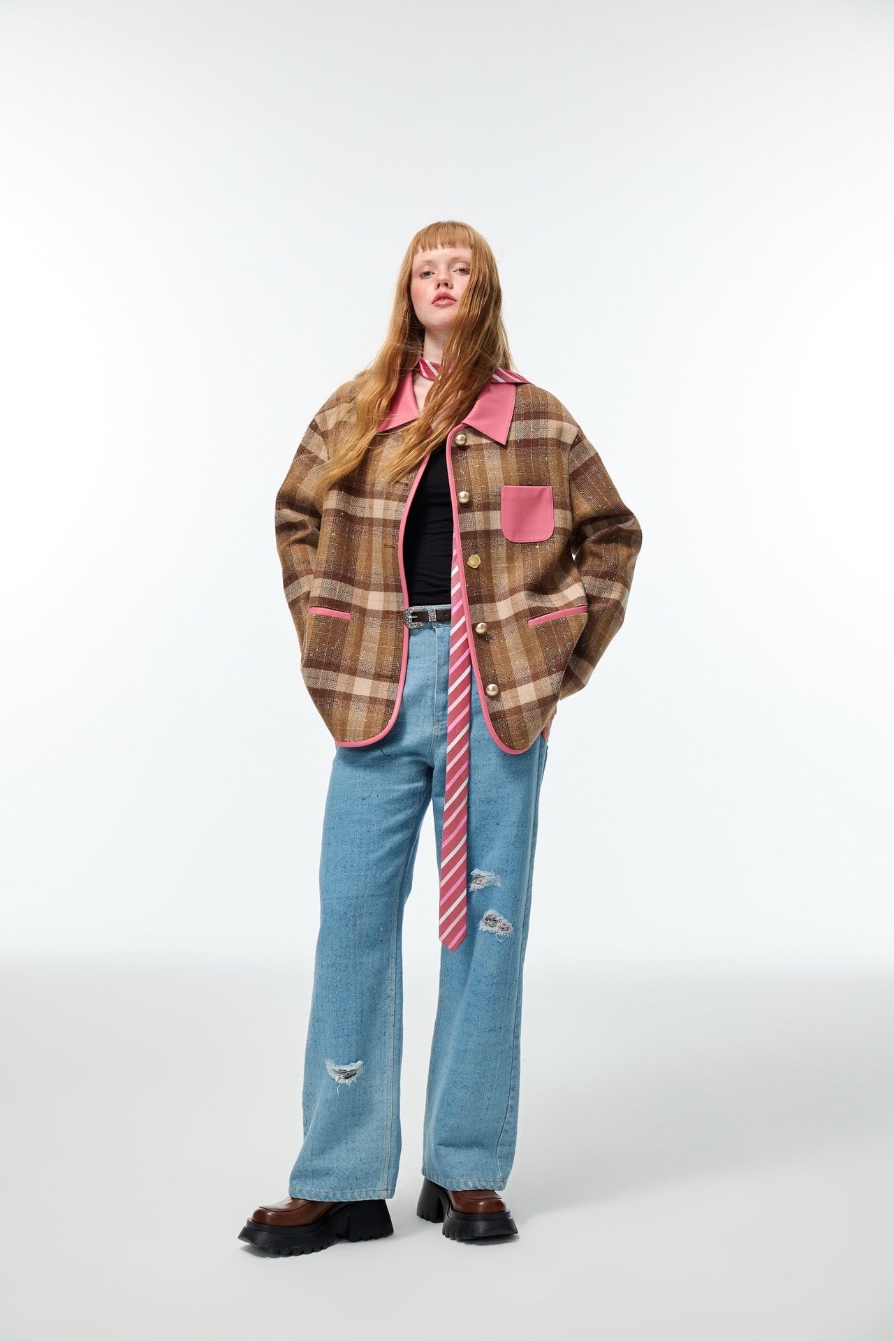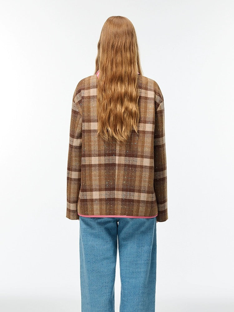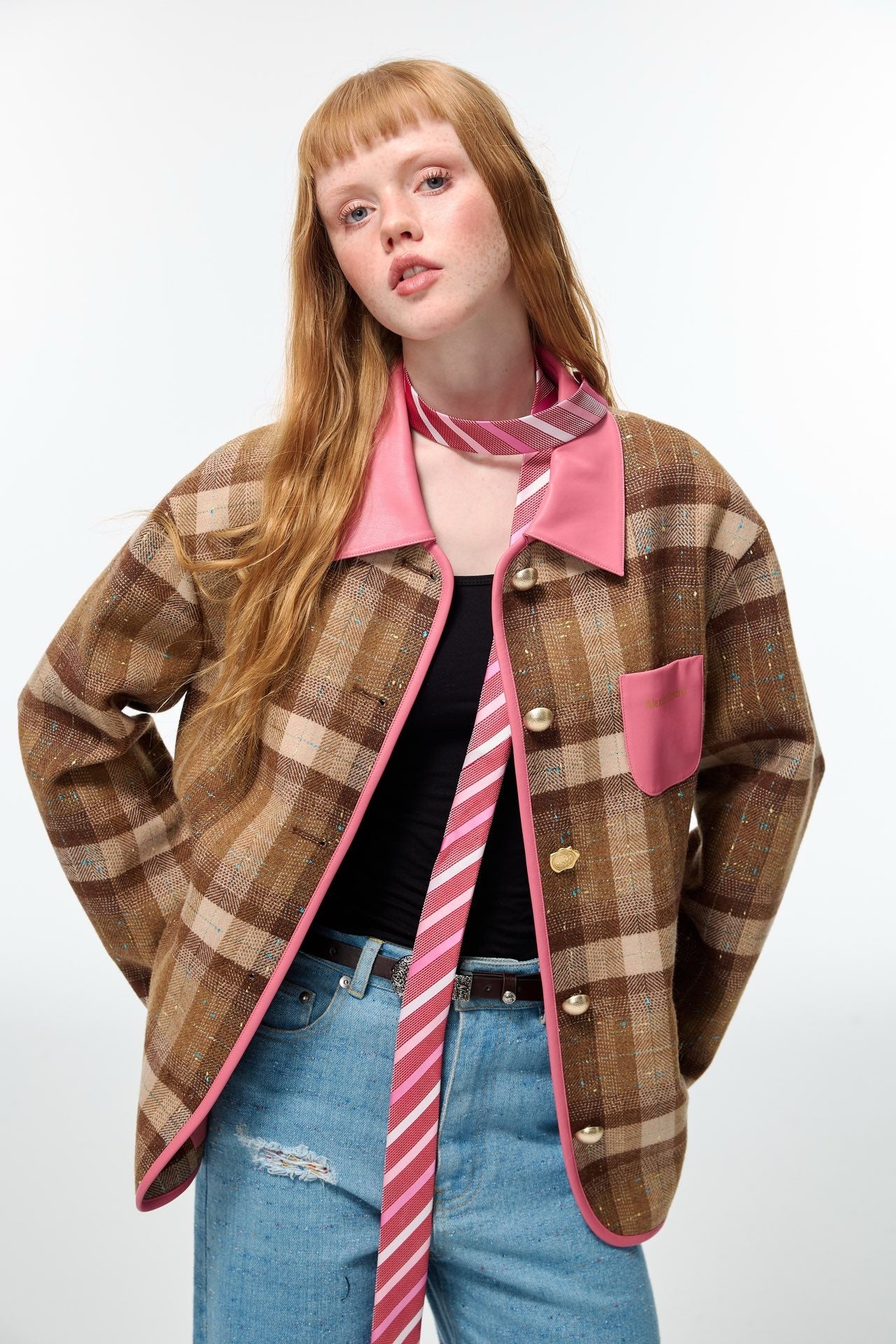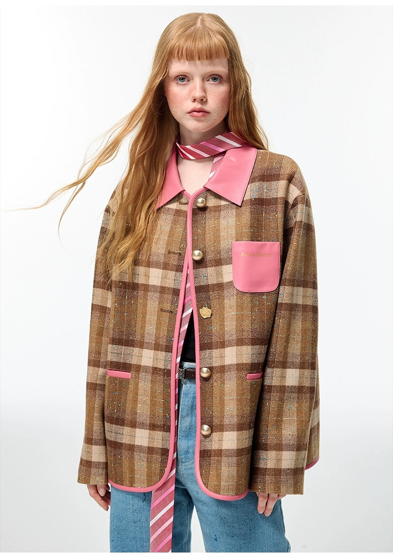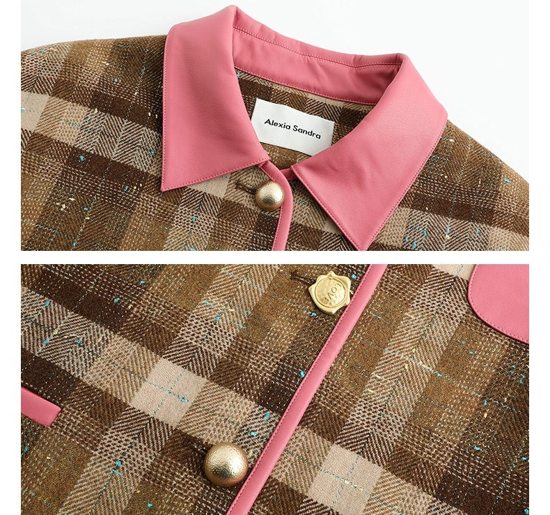 Alexia Sandra Pink Brown Patchwork Leather Plaid Jacket