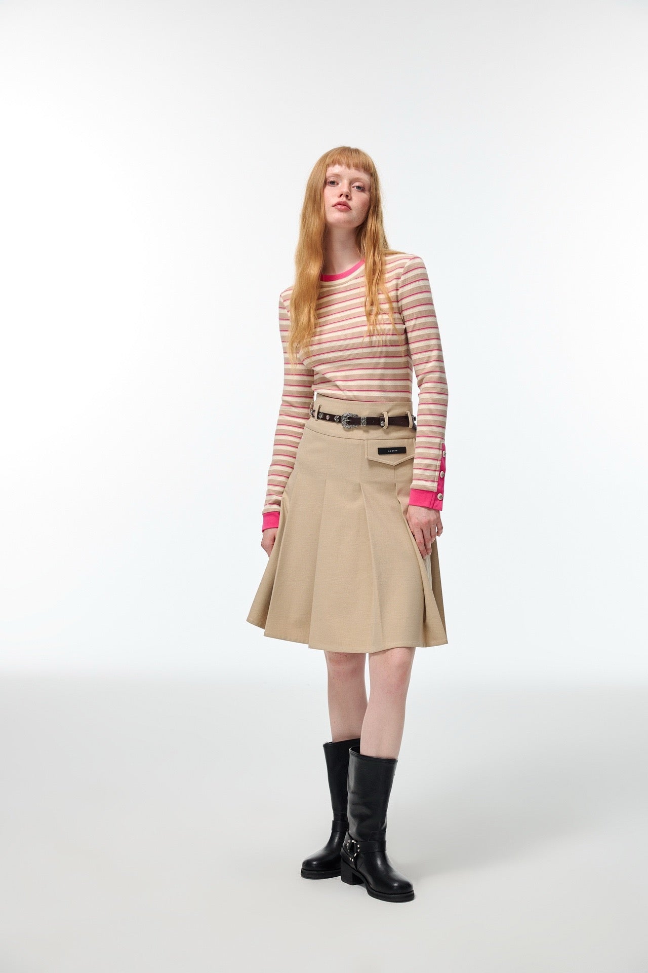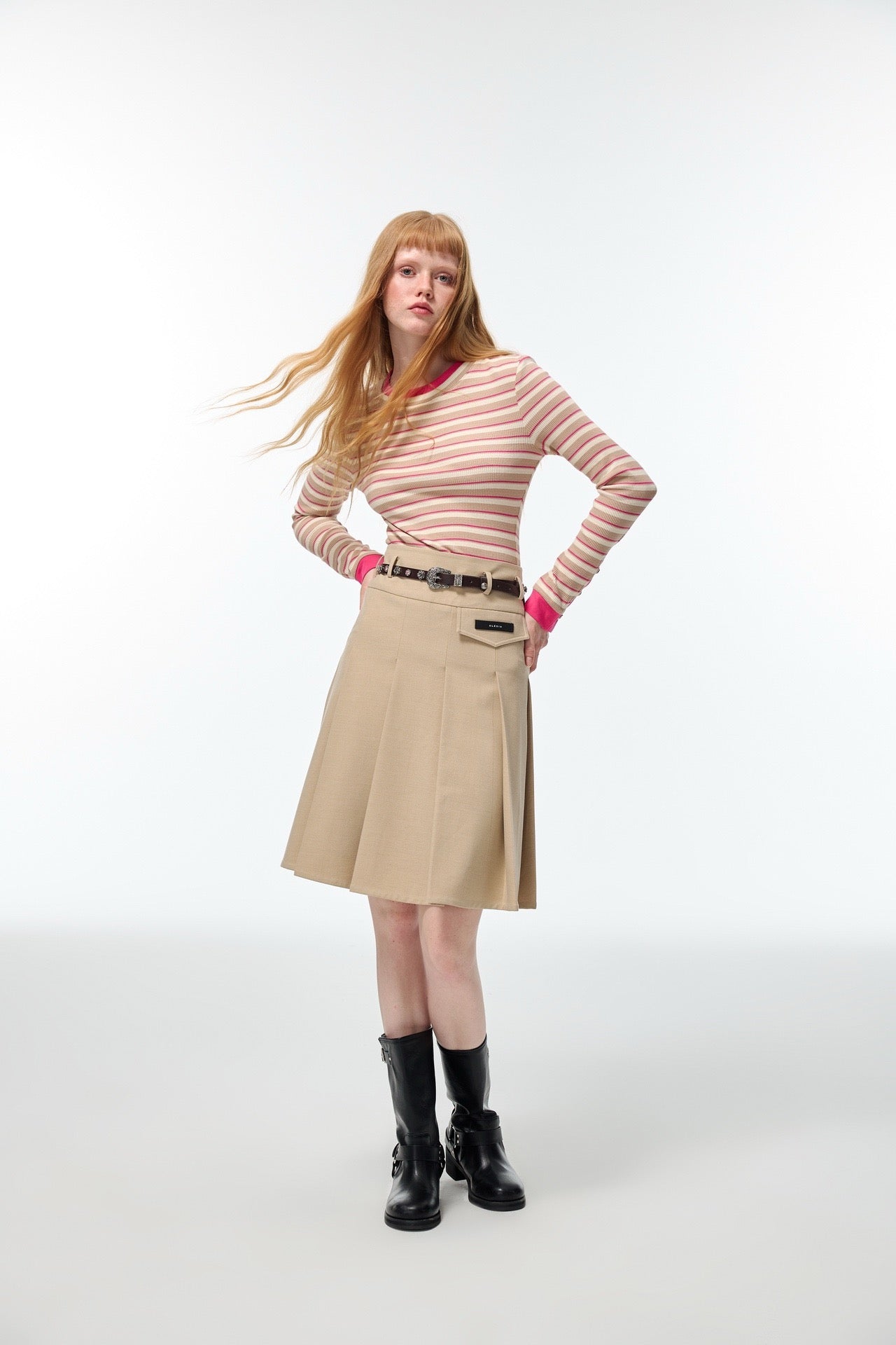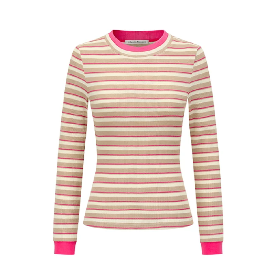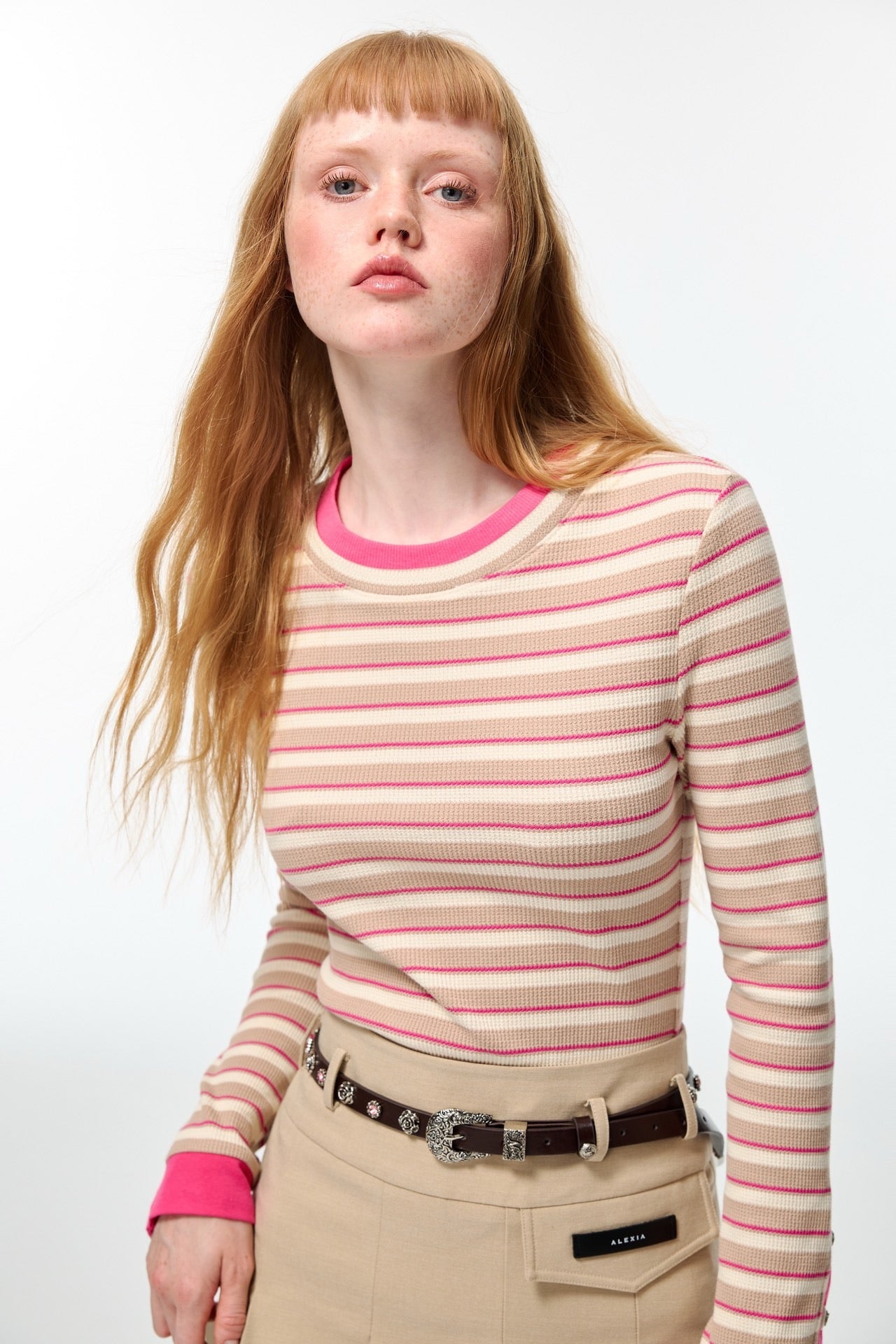 Alexia Sandra Stripe Round Neck Knit Top Beige/Pink