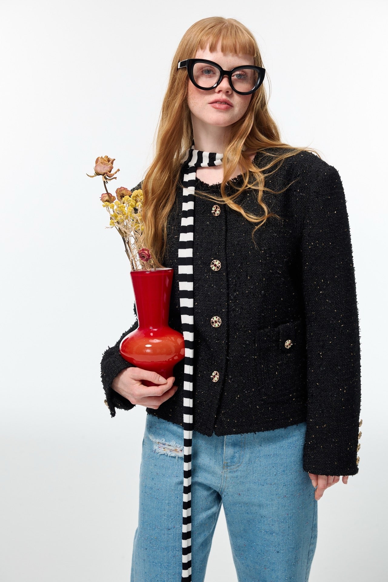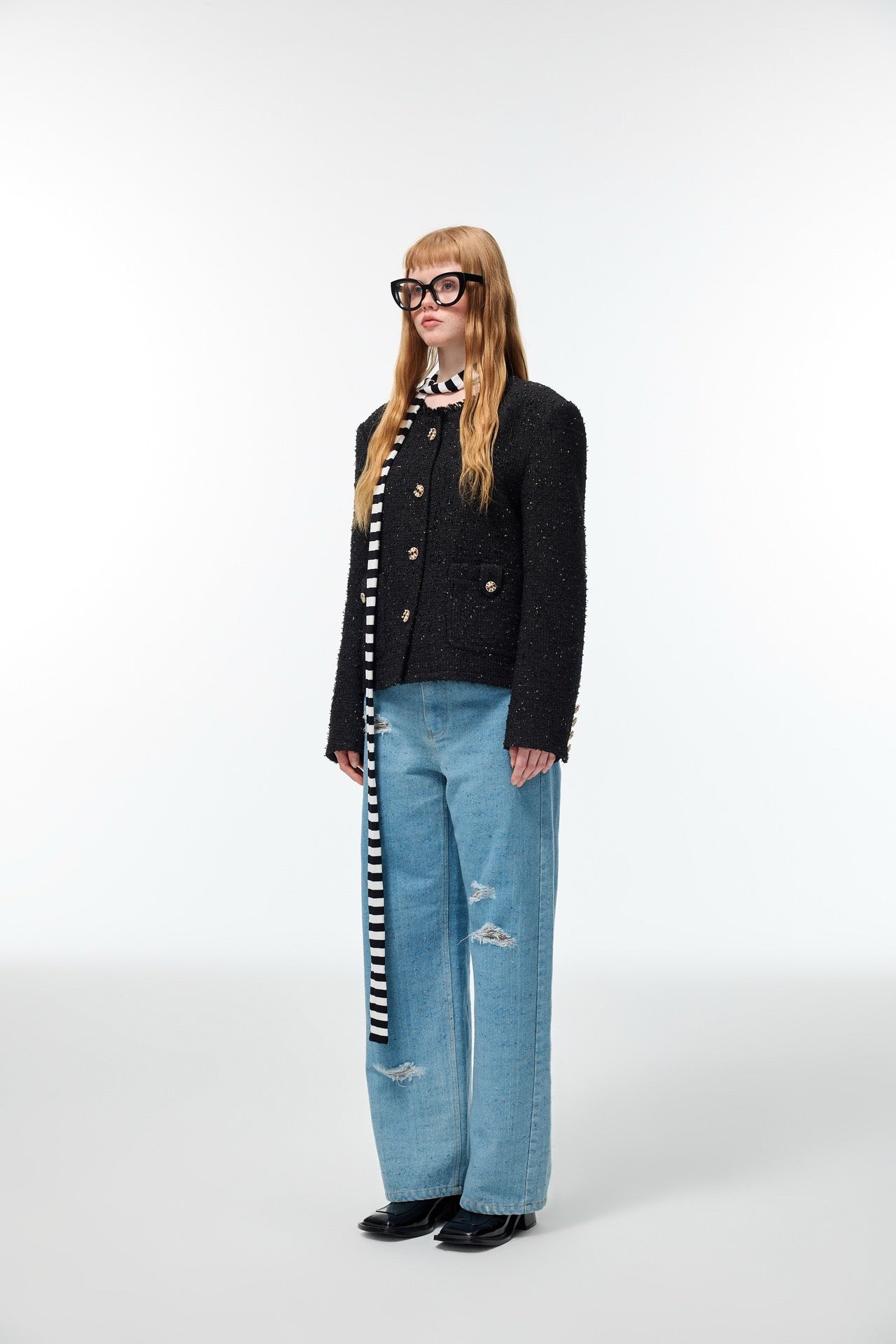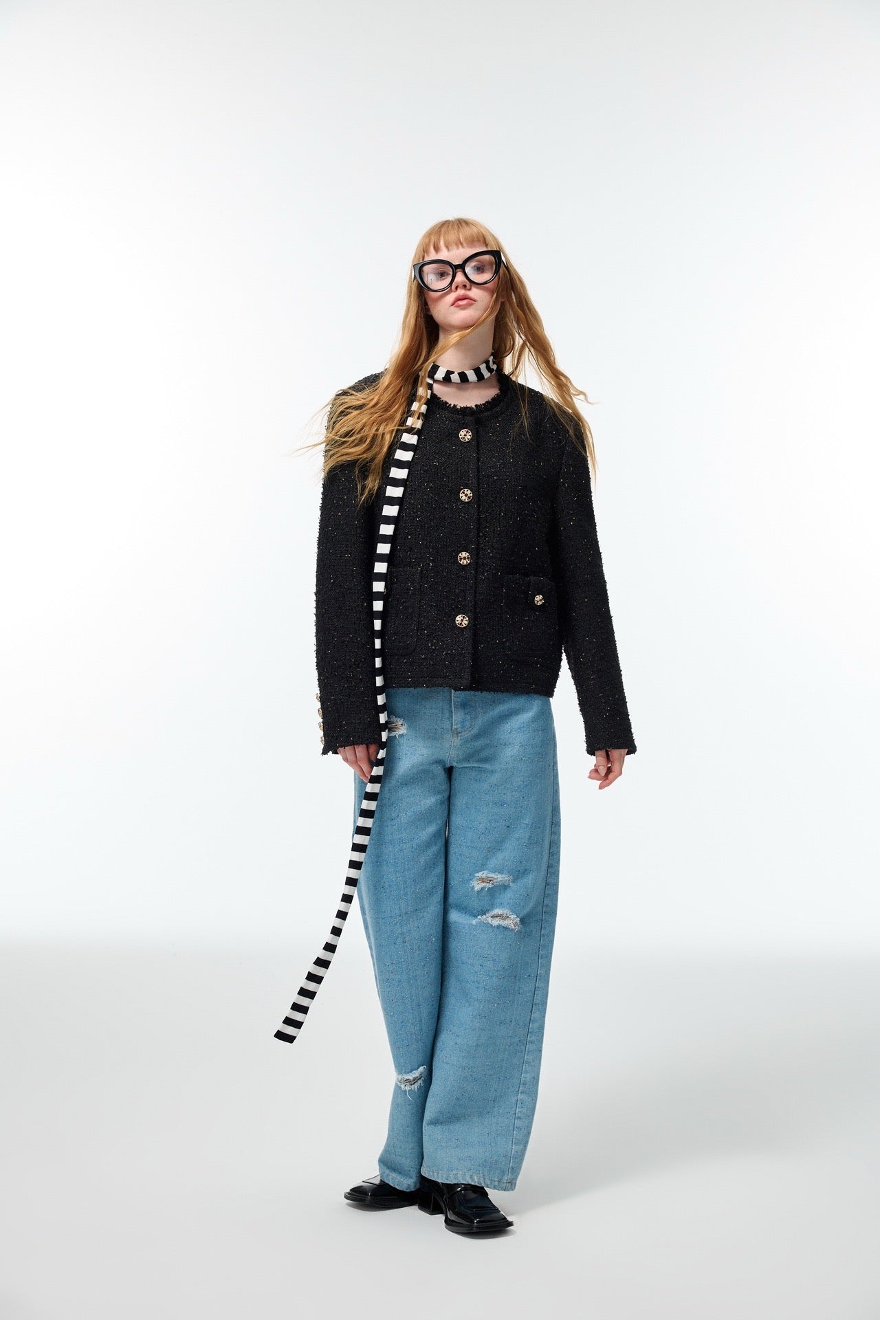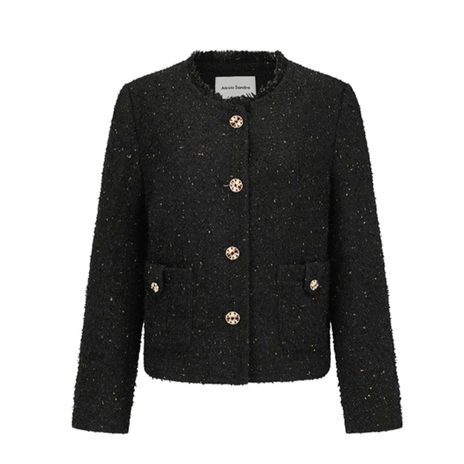 Alexia Sandra Tweed Round Neck Jacket Black