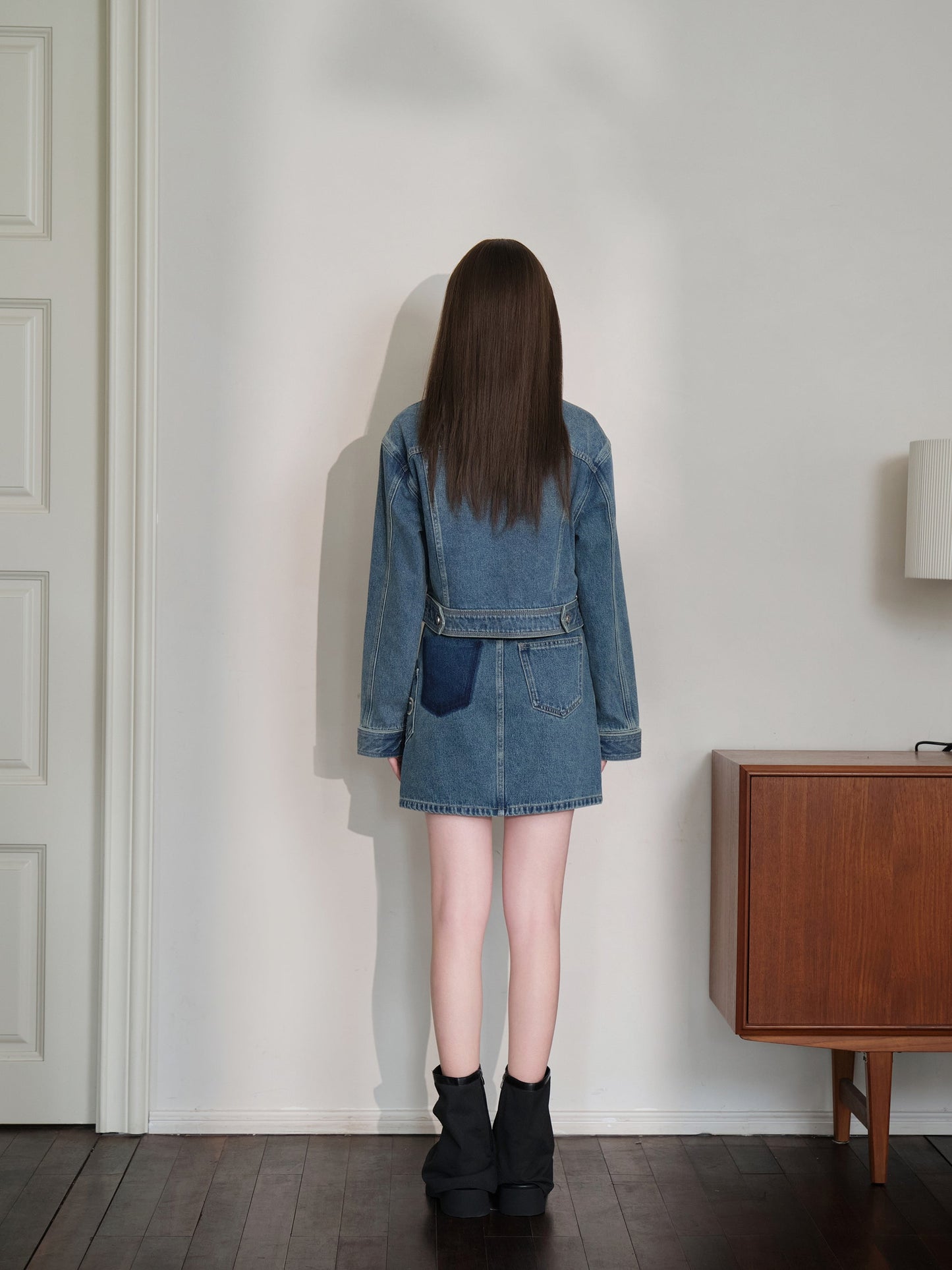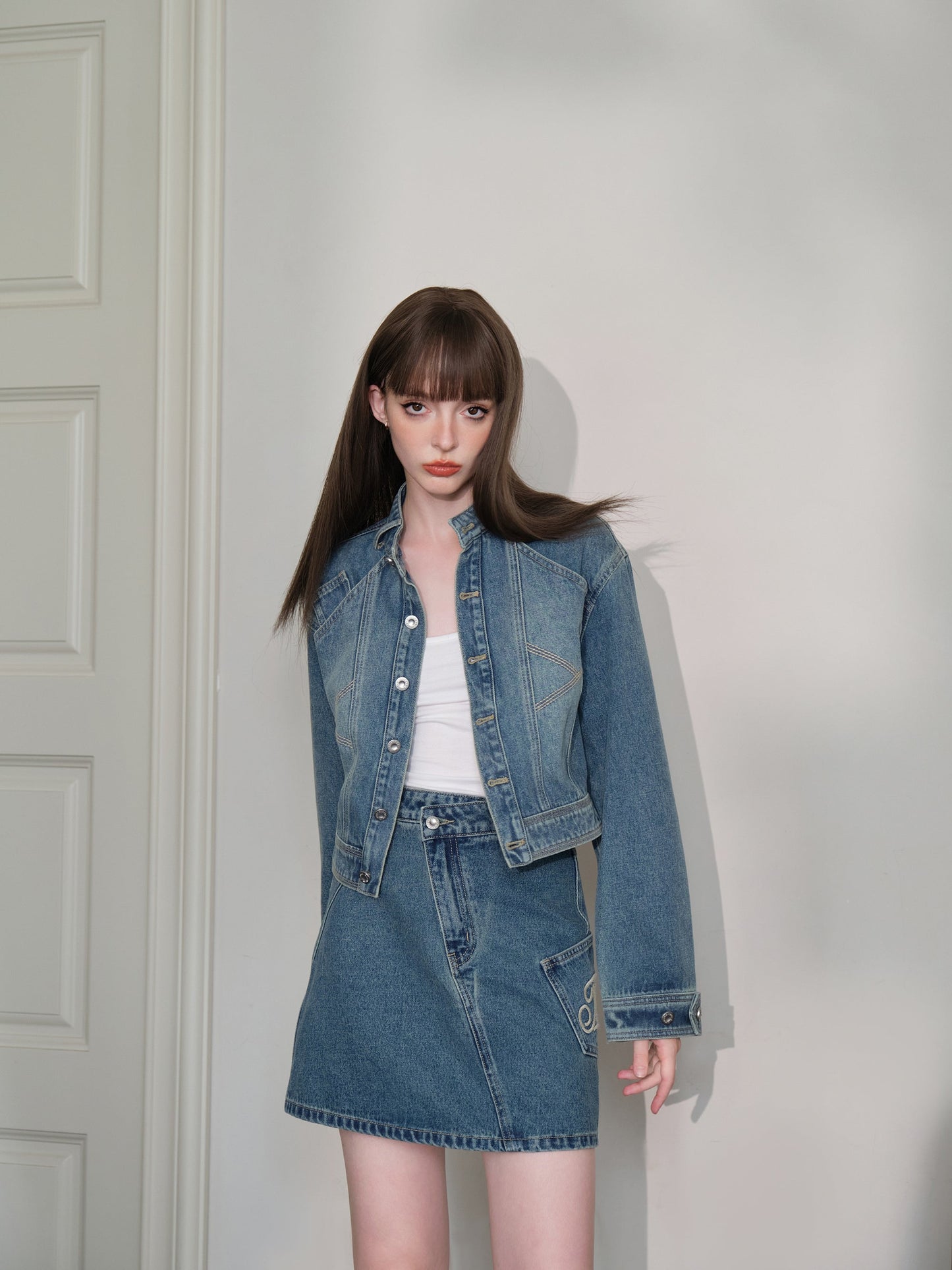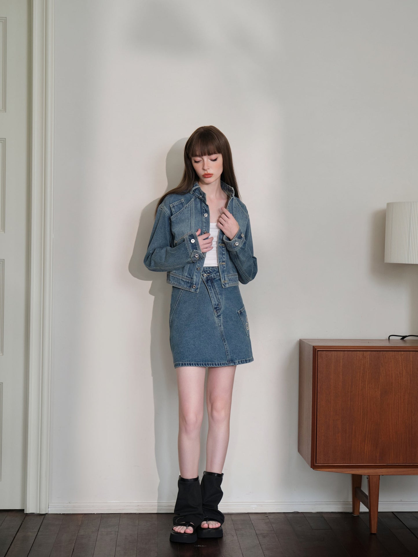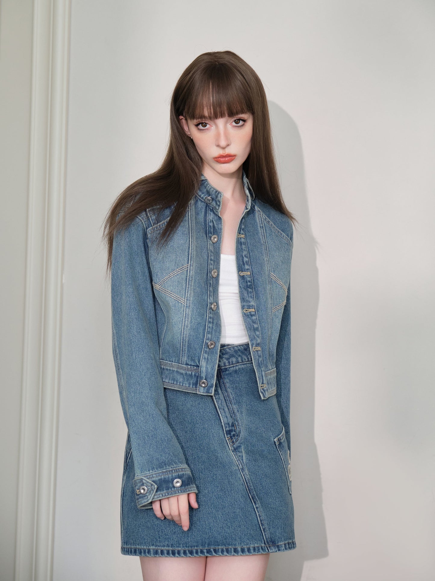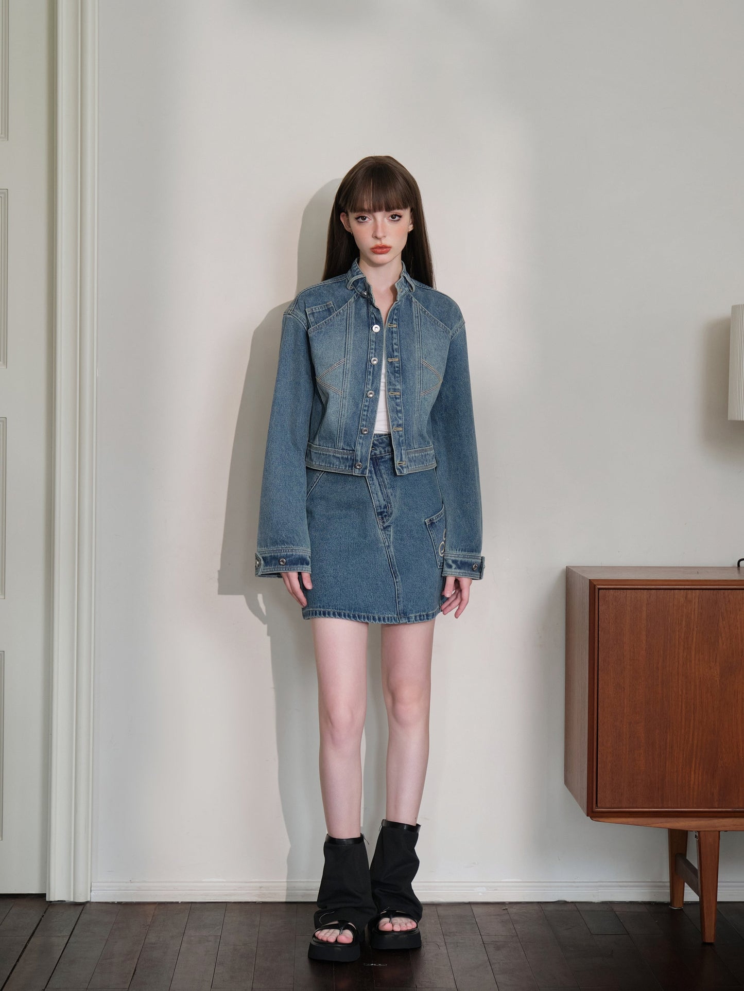 THREE QUARTERS Vintage Washed Denim Jacket and Skirt