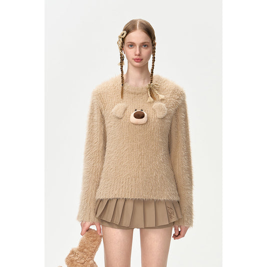 13DE MARZO Plush Doll Knit Furry Sweater Khaki