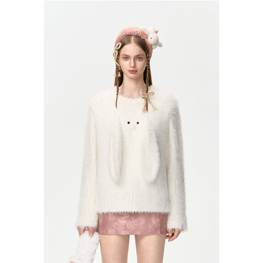 13DE MARZO Plush Doll Knit Furry Sweater White