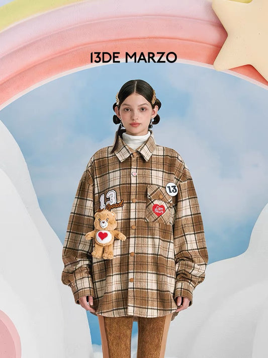 13DE MARZO x CARE BEARS Plaid Shirt Coat Candied Ginger