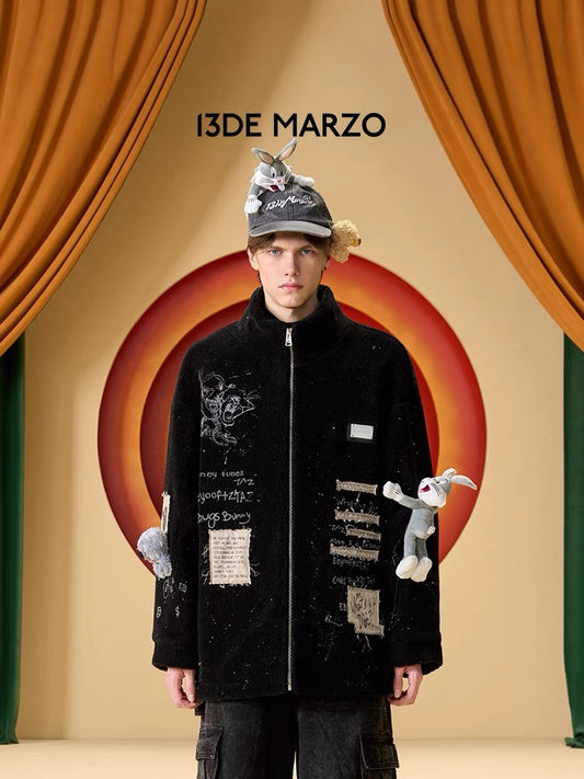 13DE MARZO x LOONEY TUNES Bugs Bunny Eco Fleece Jacket Black