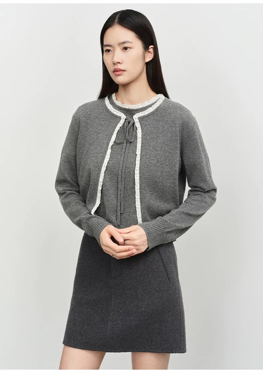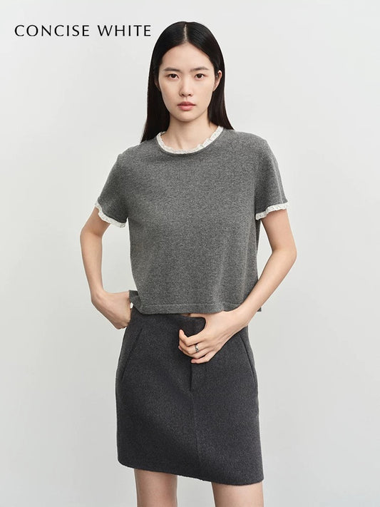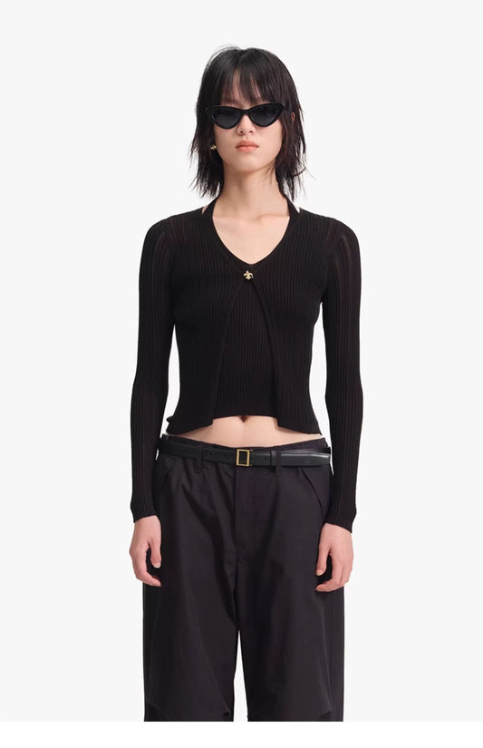 Concise-White Iris Fake Two-Piece Knitted Top Black