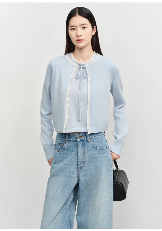 Concise-White Iris Fake Two-Piece Knitted Top Apricot