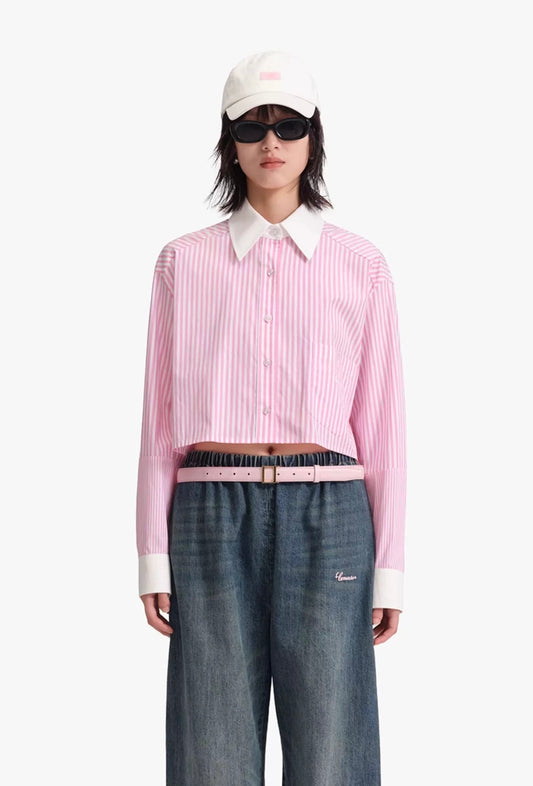 Concise-White Iris Fake Two-Piece Knitted Top Pink