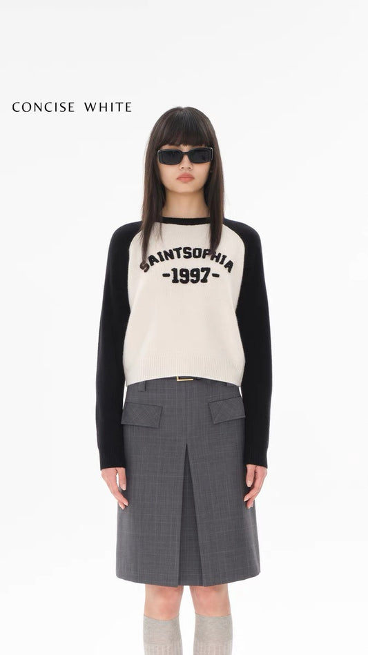 Concise-White 97 Patchwork Roundneck Knit Sweater
