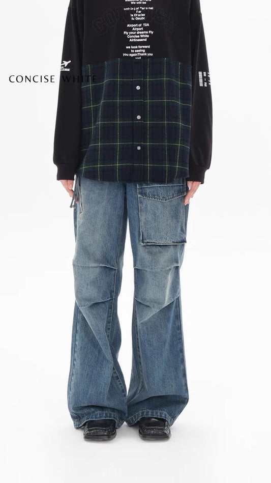 Concise-White Wide-Leg Work Jeans Vintage Blue